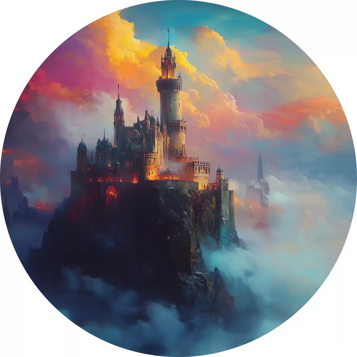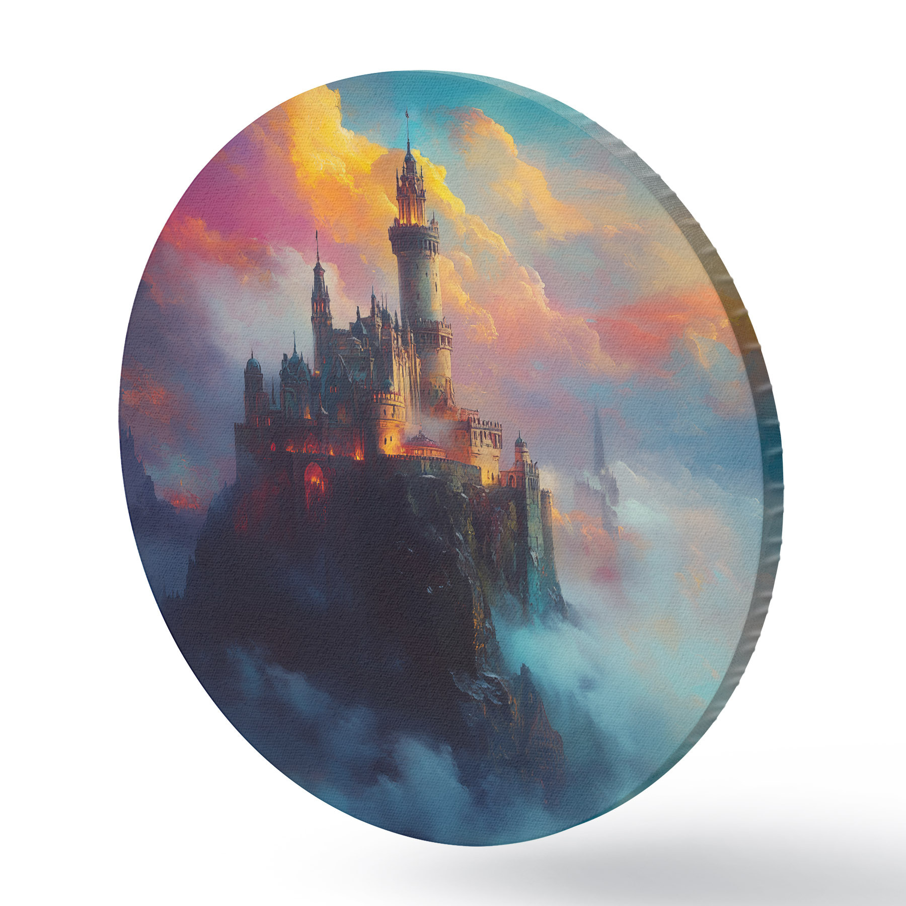 Ronde schilderijen Kasteel op een rots in de wolken r42501
