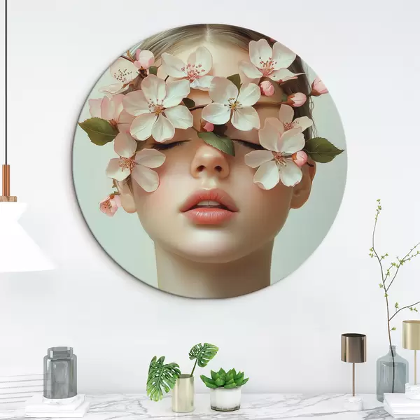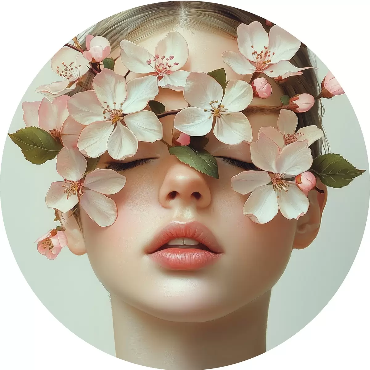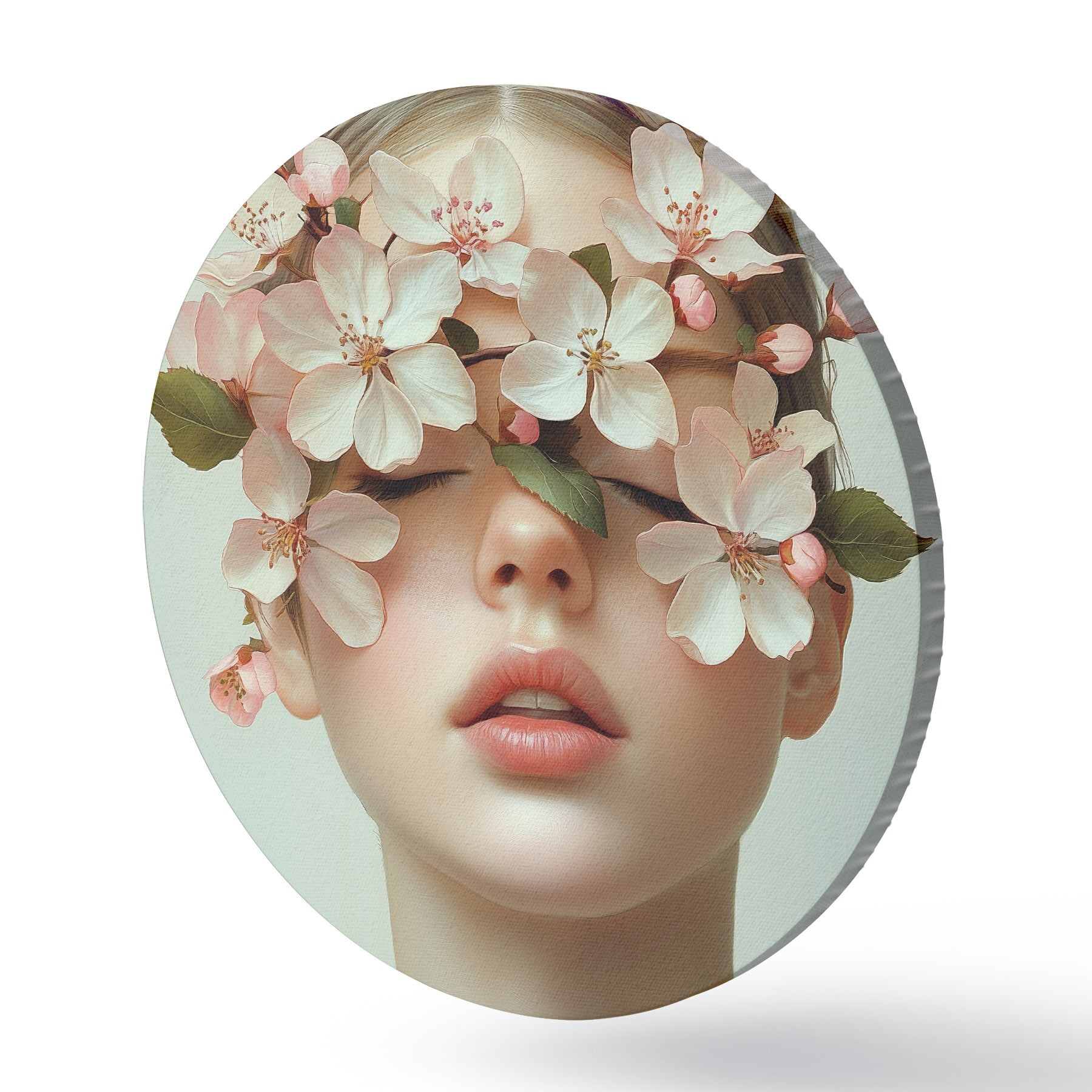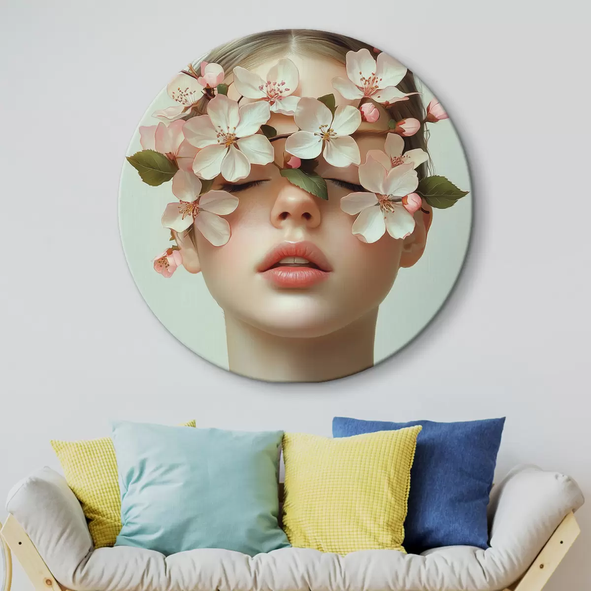 Ronde schilderijen Portret van een meisje met bloemen op haar gezicht r42506