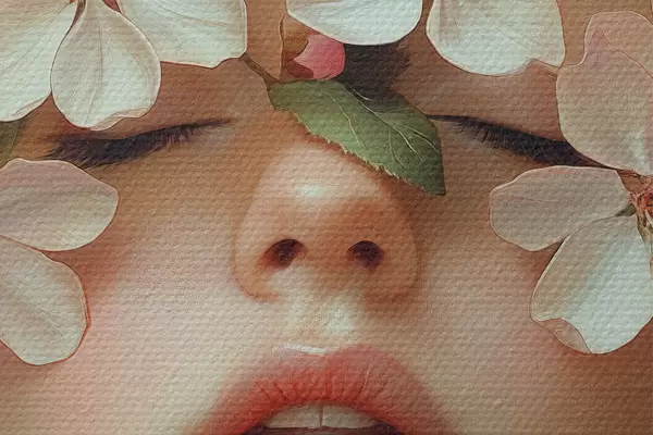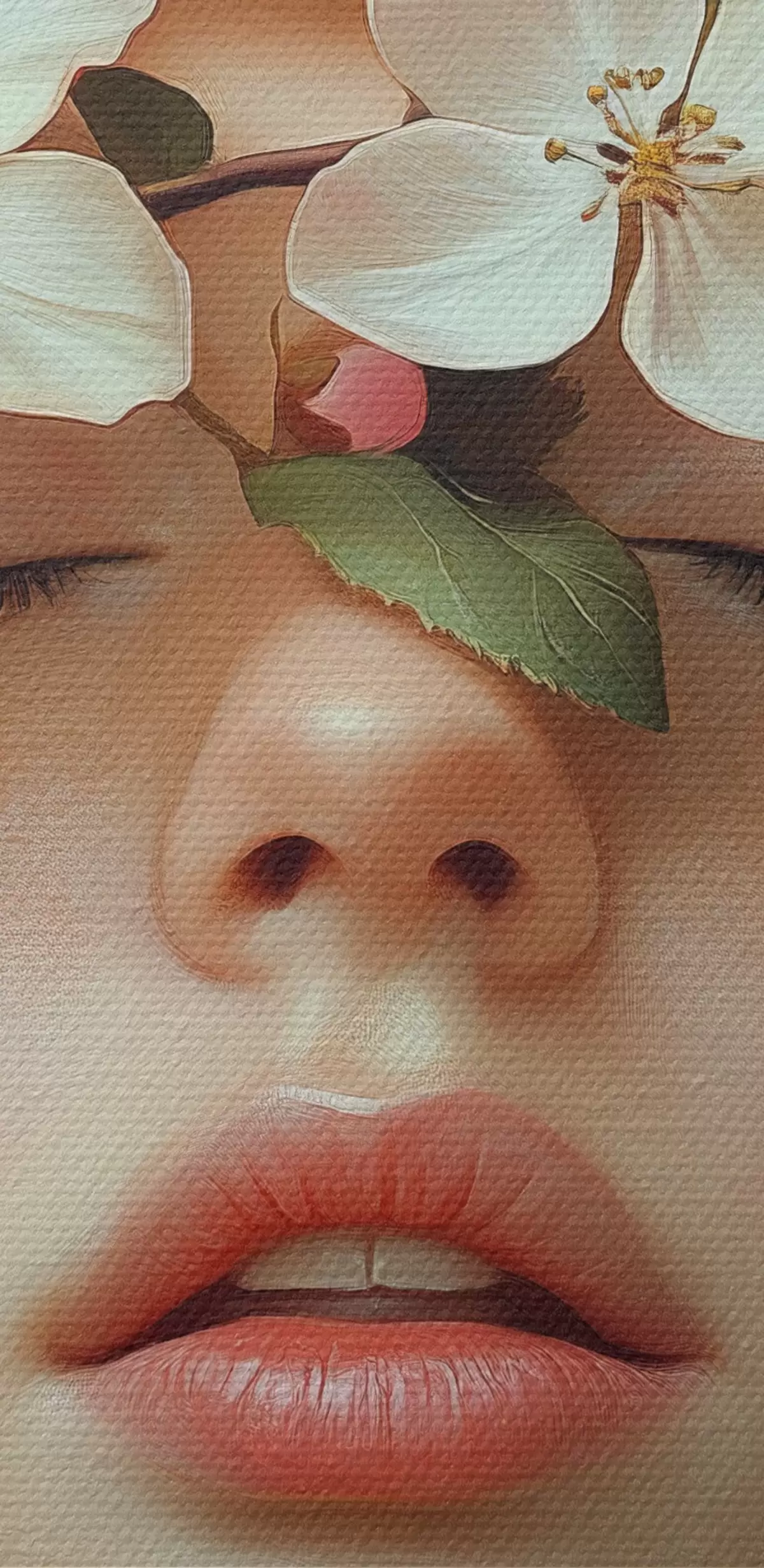 Afbeelding Portret van een meisje met bloemen op haar gezicht Nr r42506