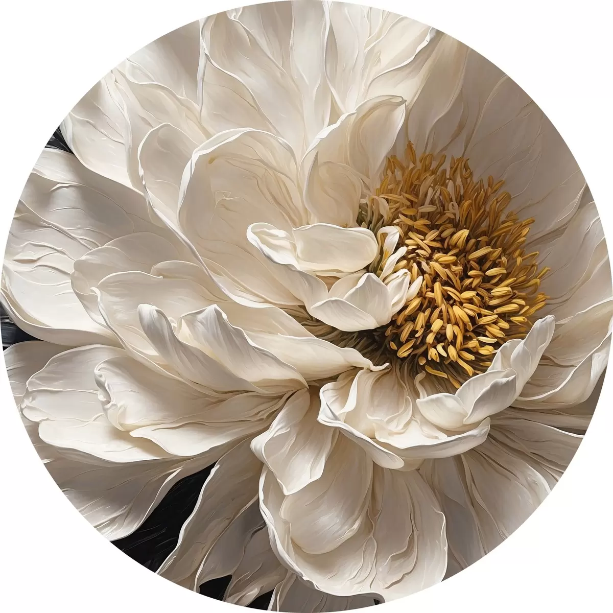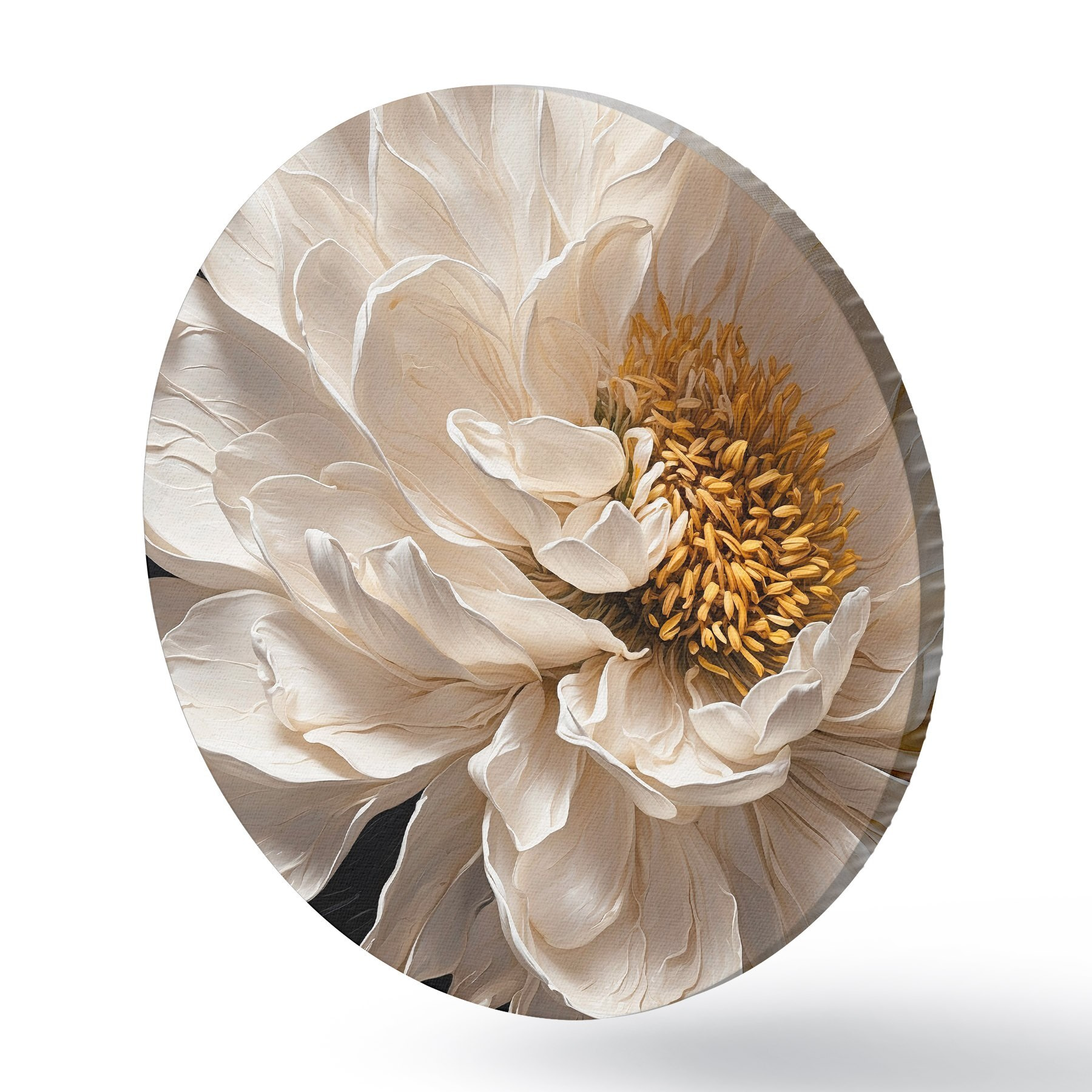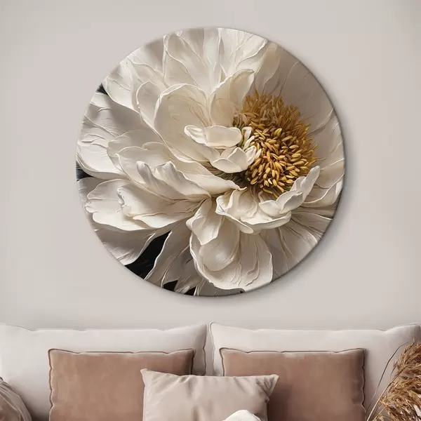 Ronde schilderijen Witte bloem op blauw-beige achtergrond r42523
