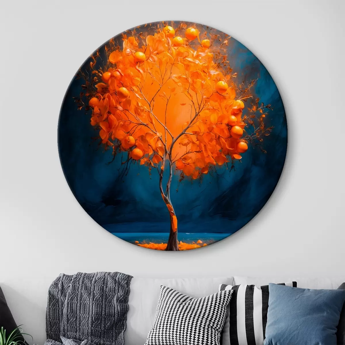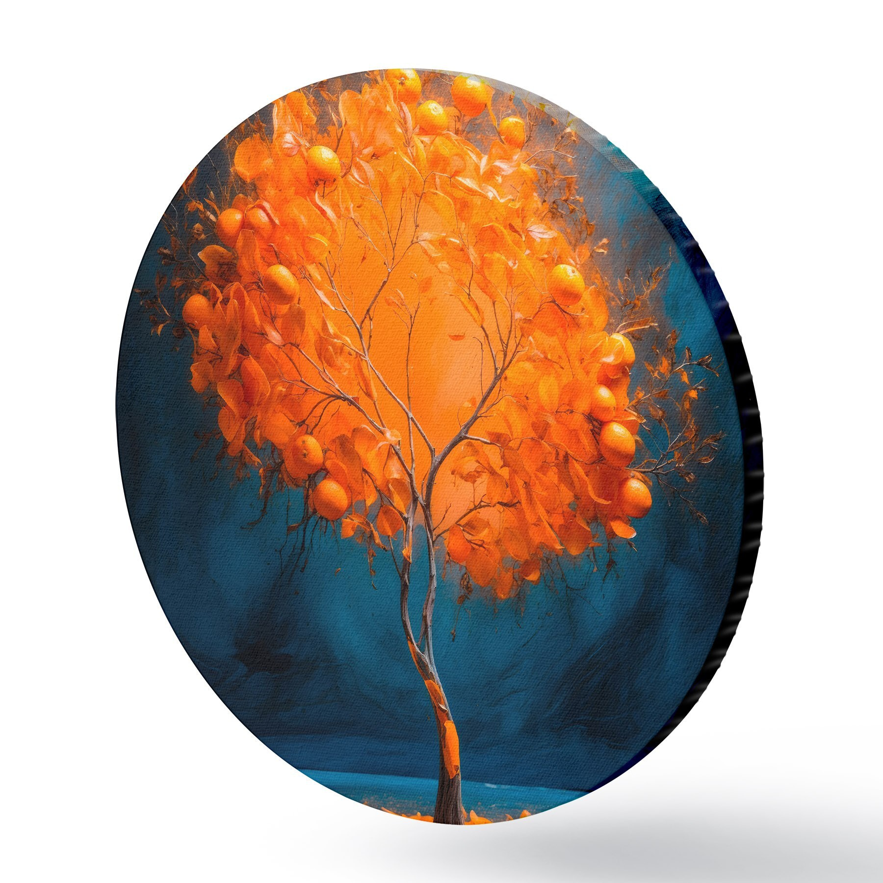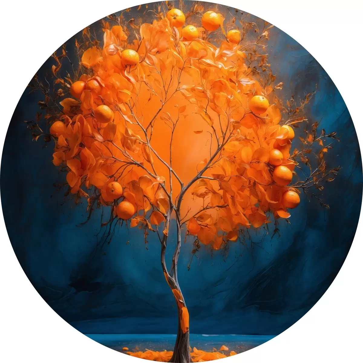 Ronde schilderijen Oranje boom op blauwe achtergrond in acrylschilderstijl r42525