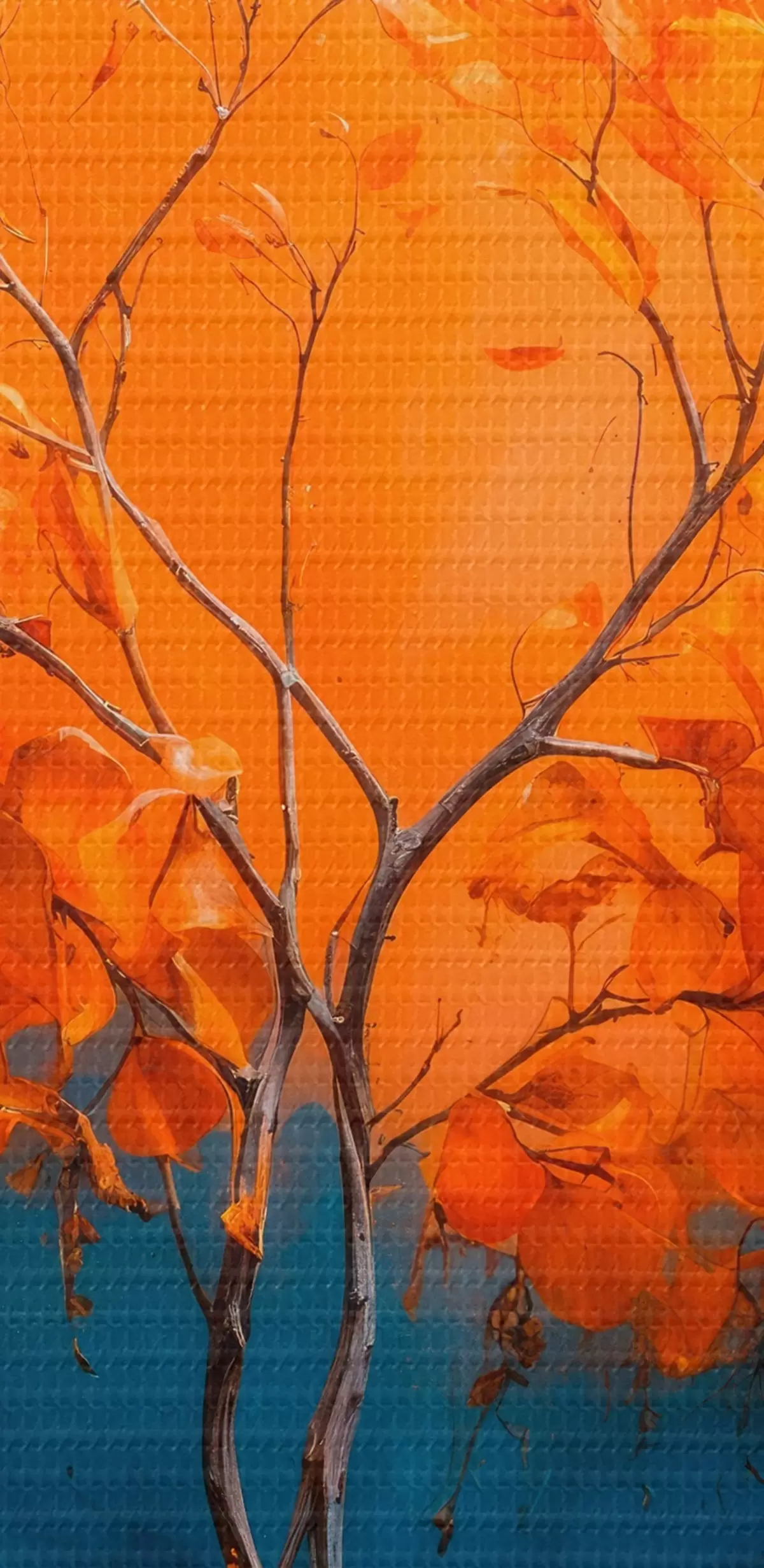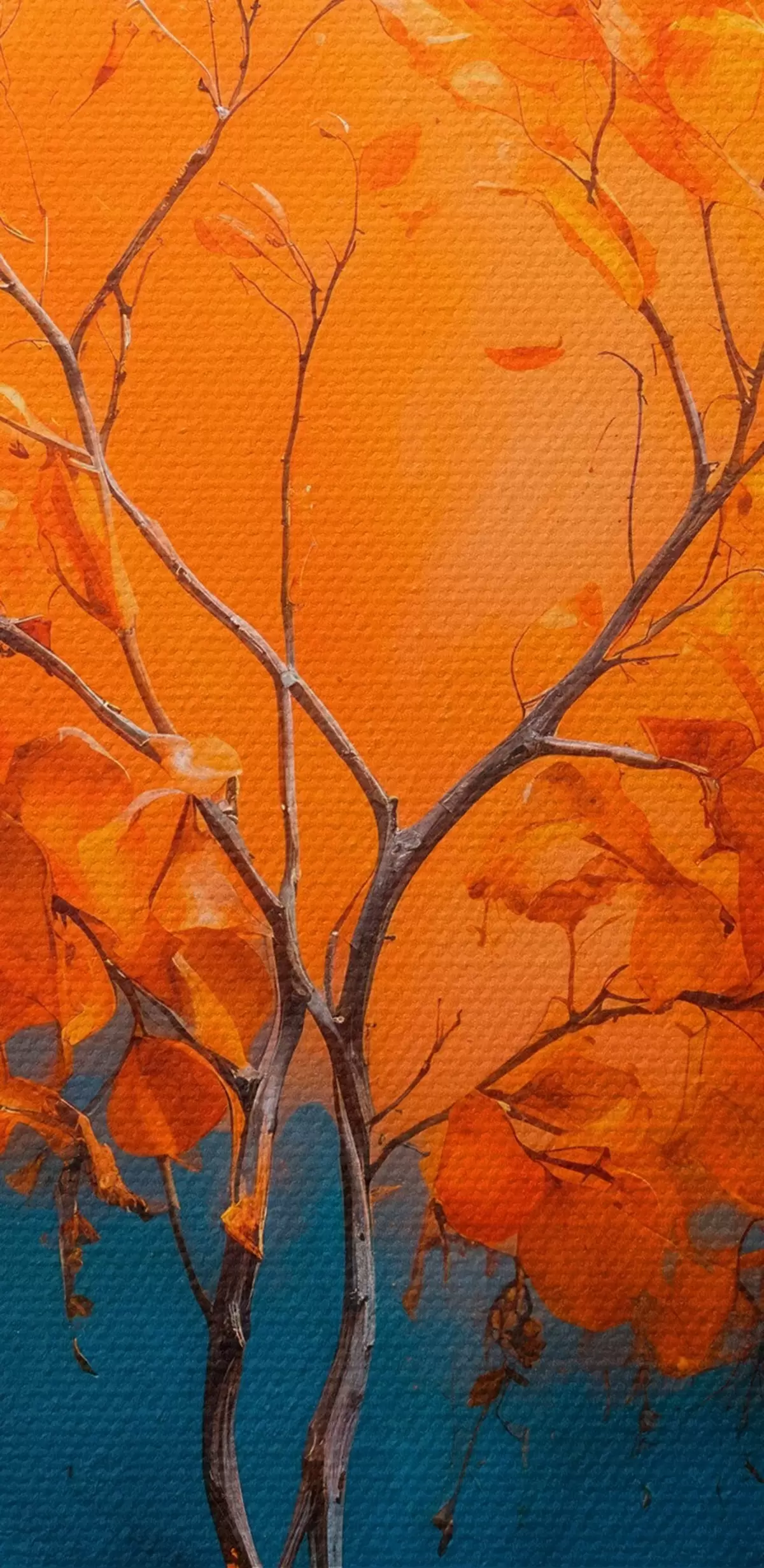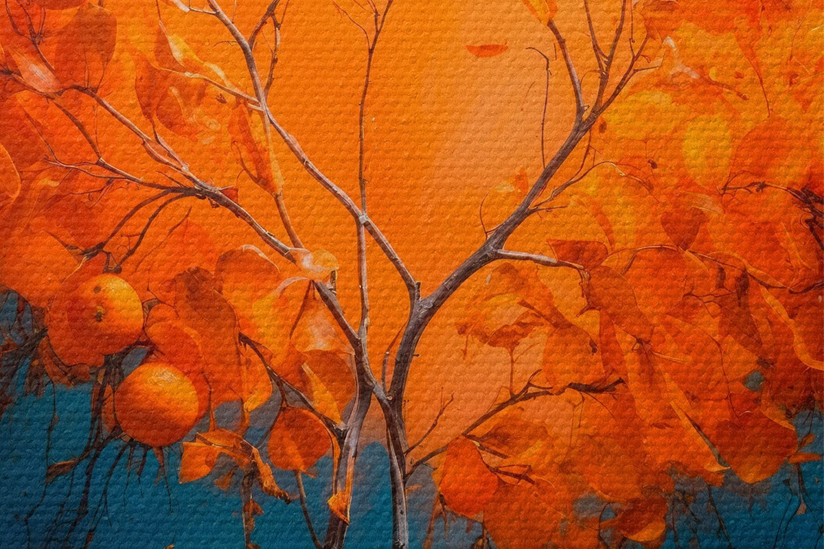 Afbeelding Oranje boom op blauwe achtergrond in acrylschilderstijl Nr r42525
