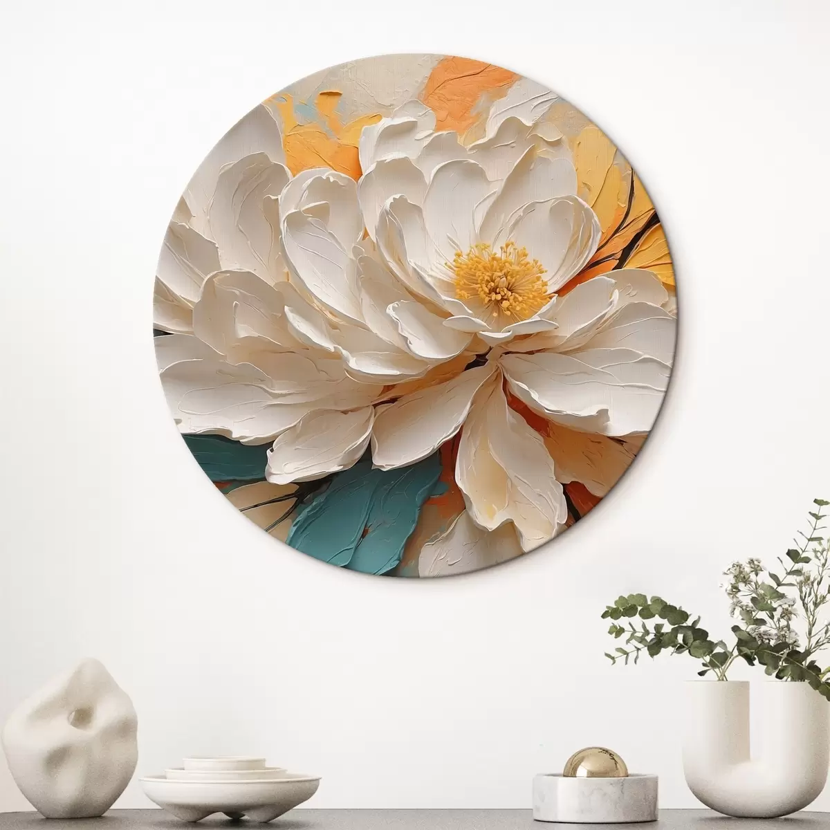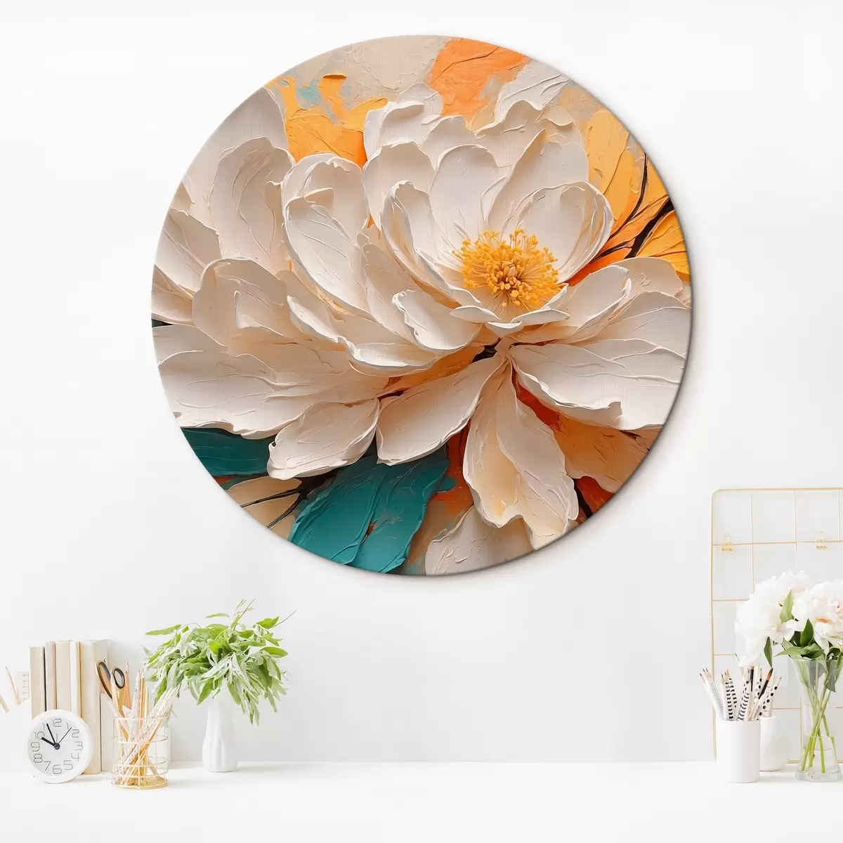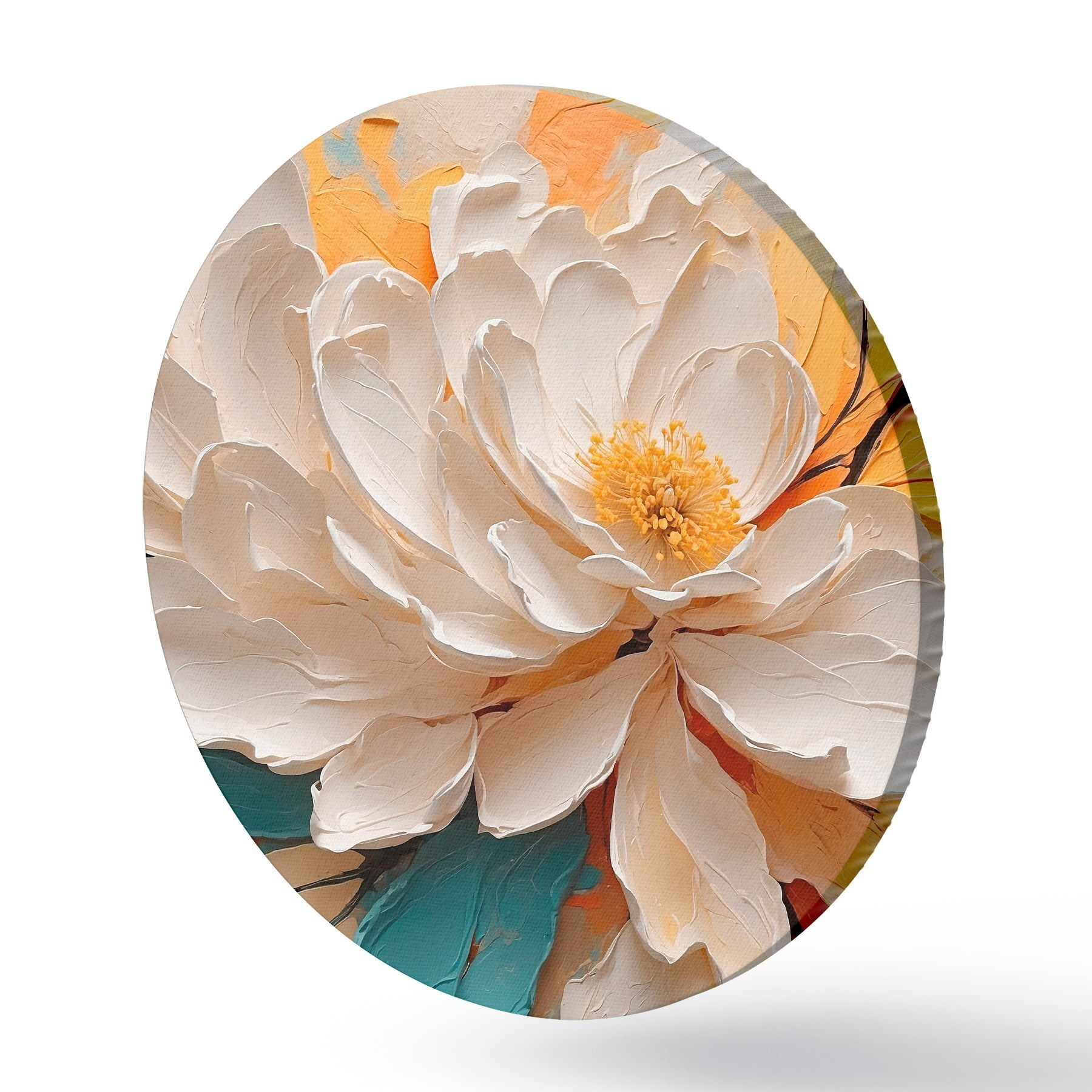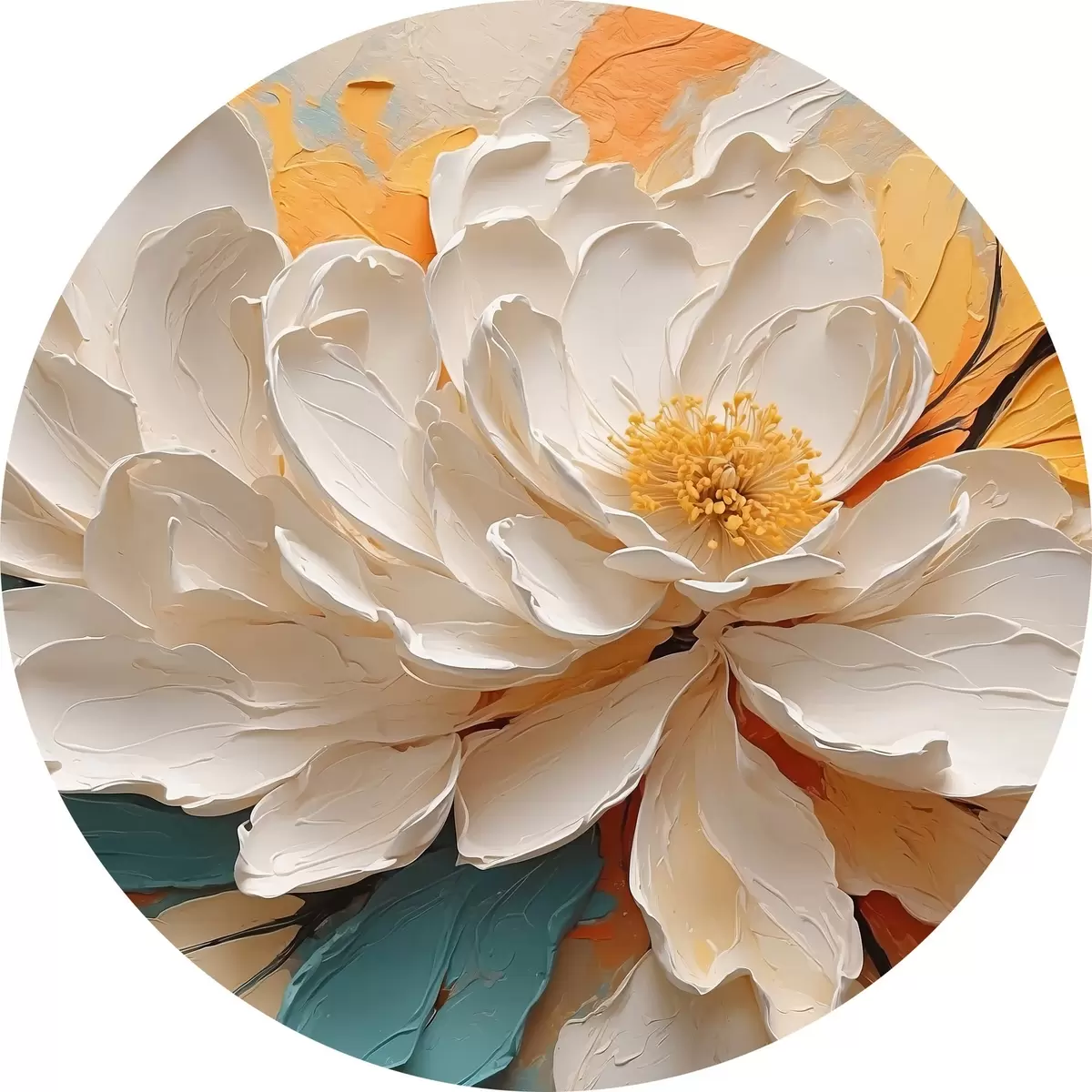 Ronde schilderijen Witte bloem in olieverfschilderijstijl r42528