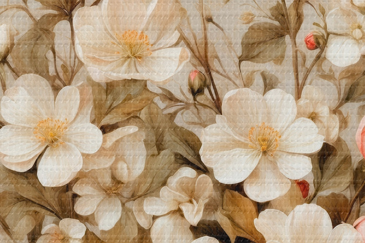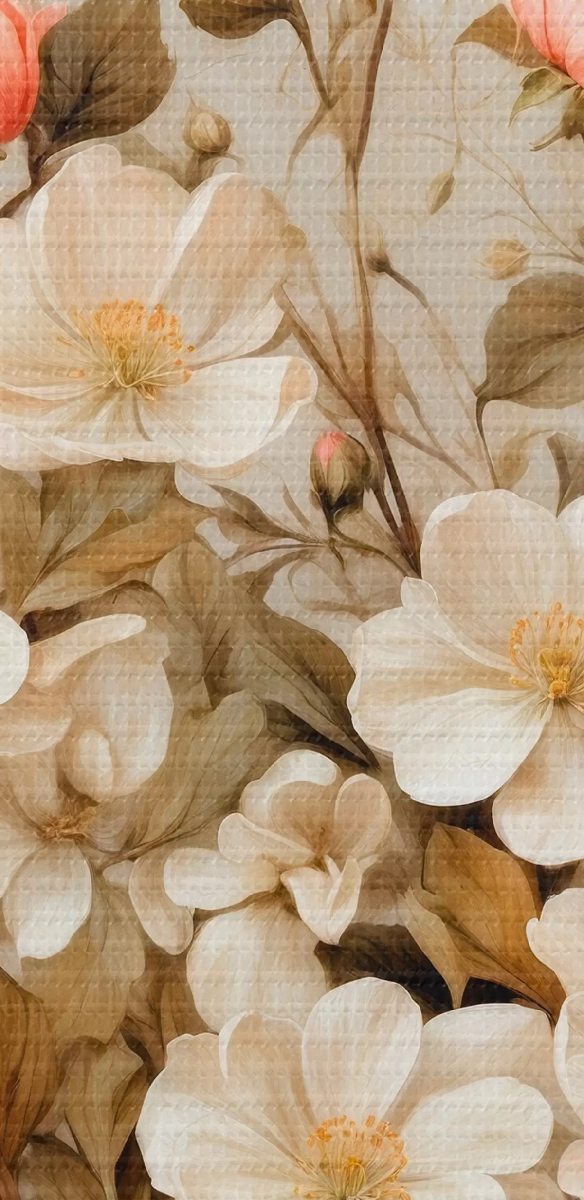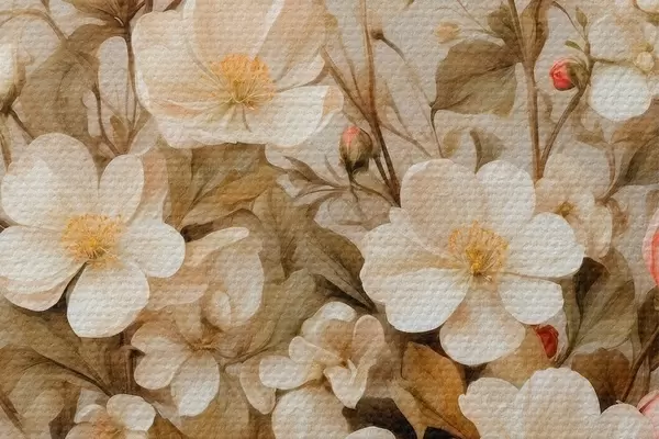 Afbeelding Bloemen in transparante vaas op beige achtergrond Nr r42534