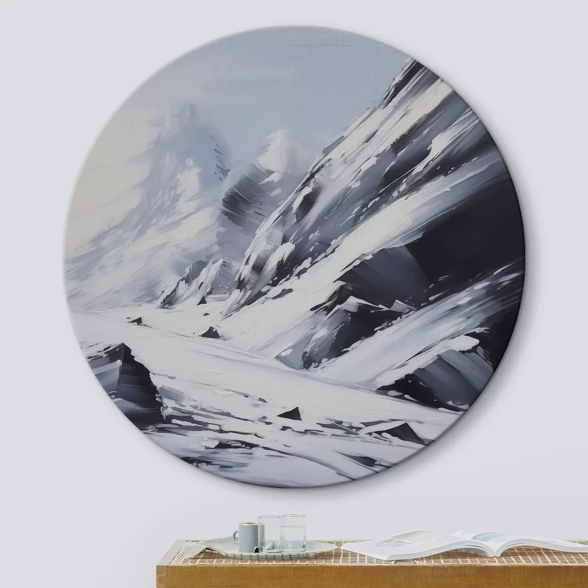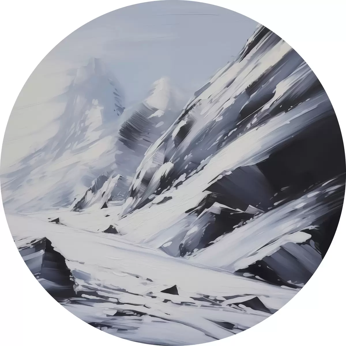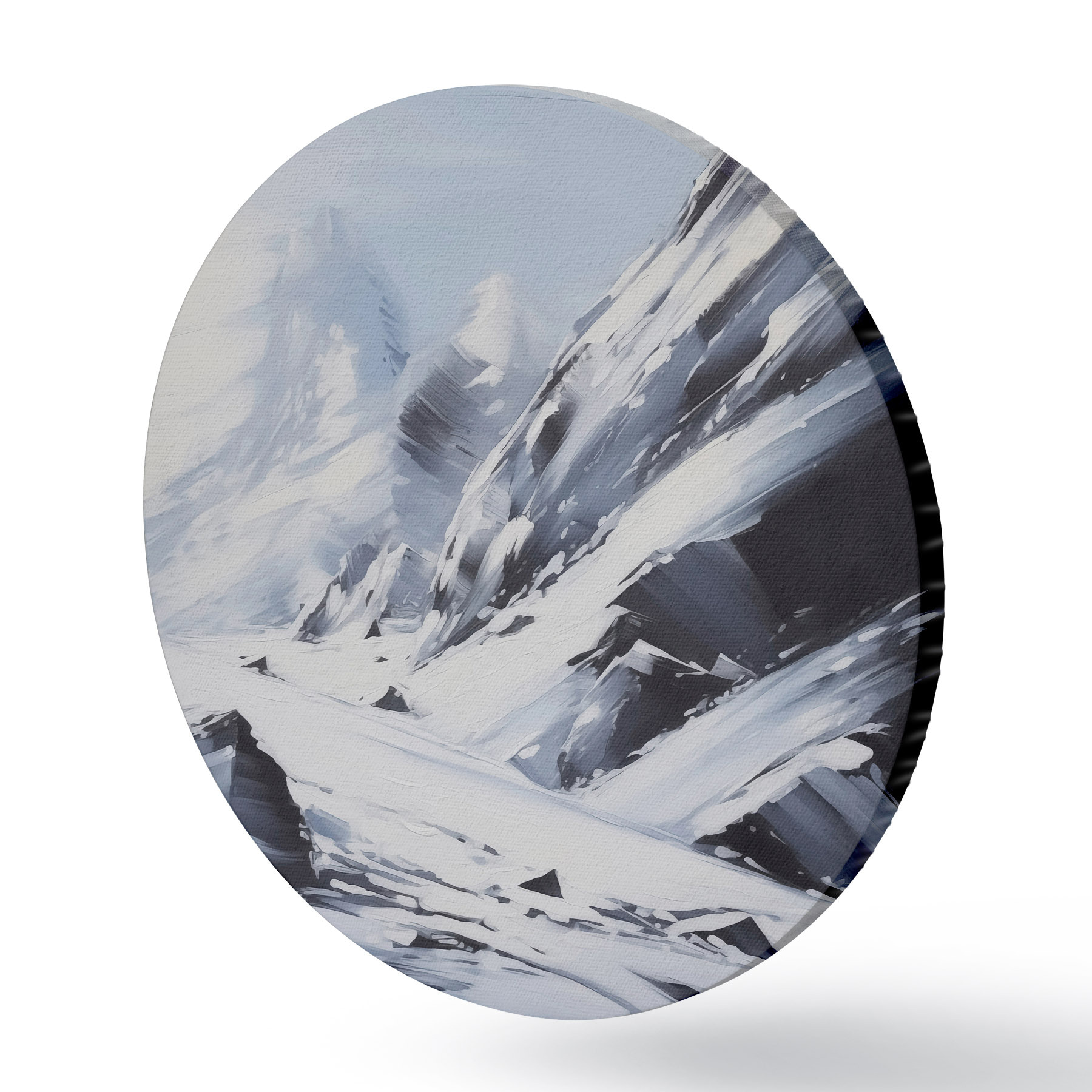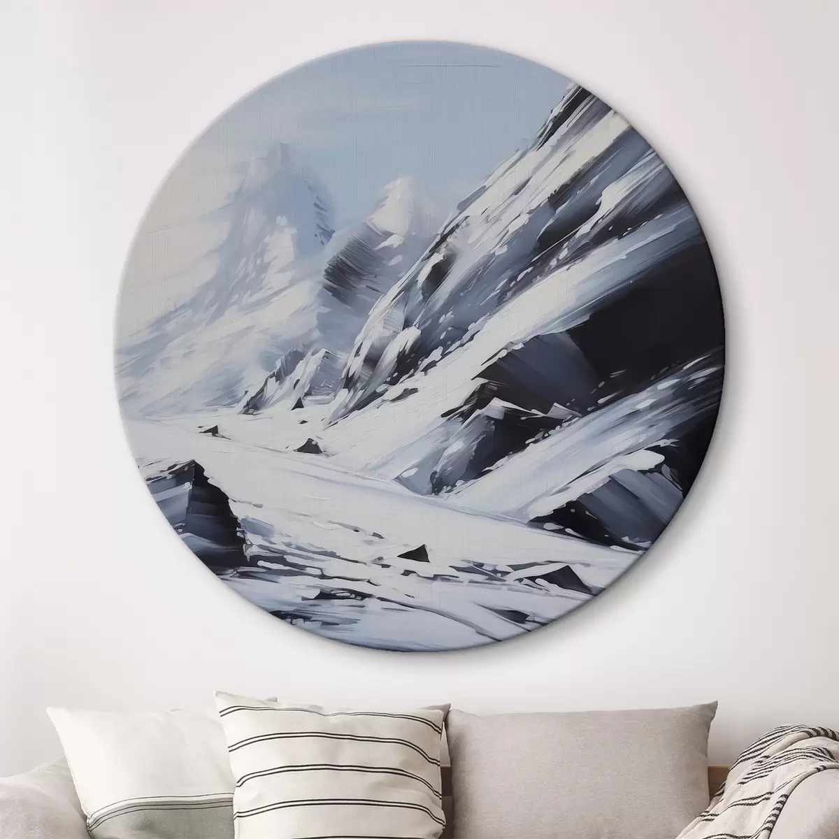 Ronde schilderijen Met sneeuw bedekte rotsen imiteren penseelstreken van schilderij r42585