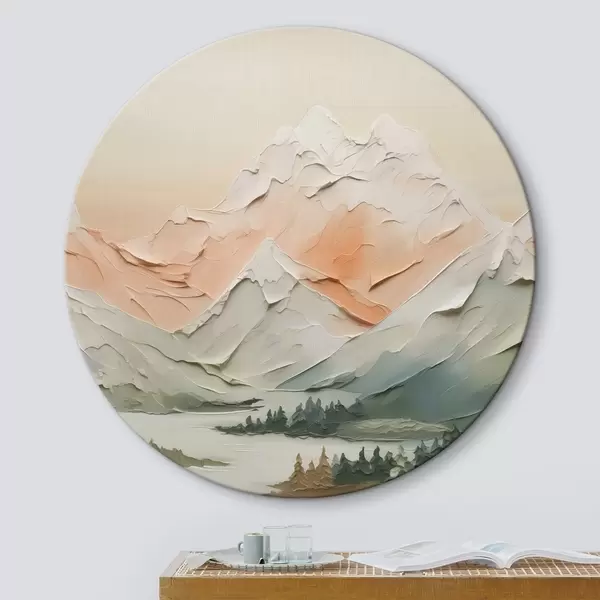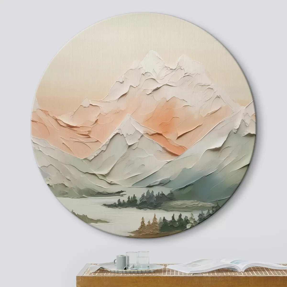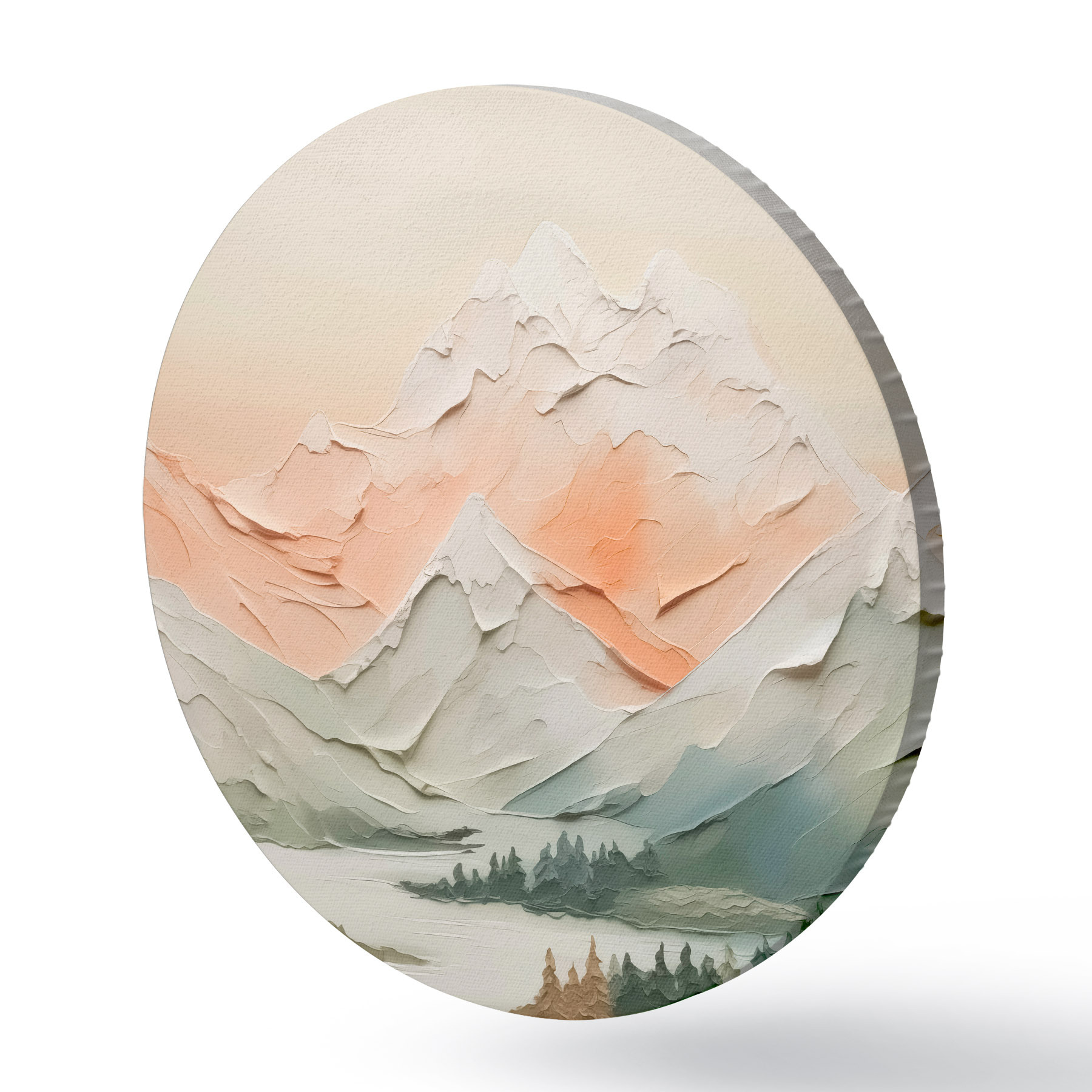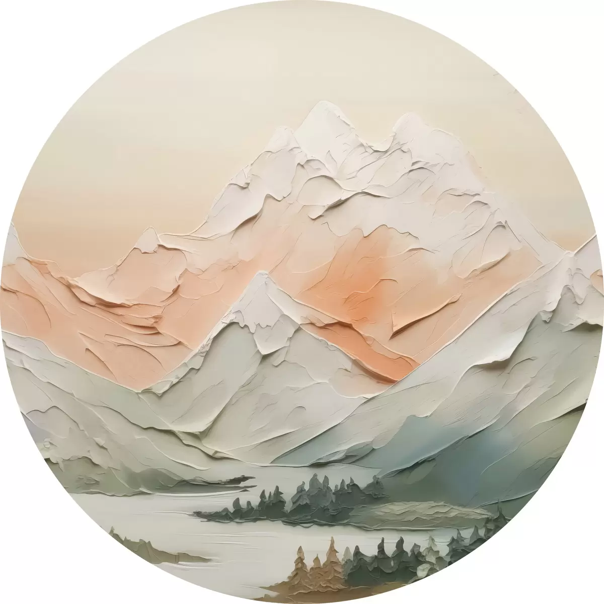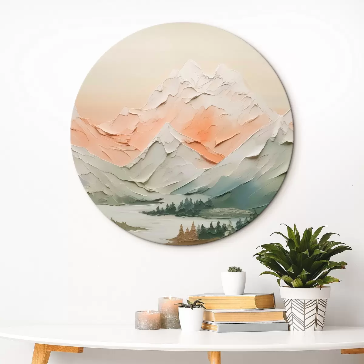 Ronde schilderijen Bergen bij de rivier imitatie van penseelstreken r42589