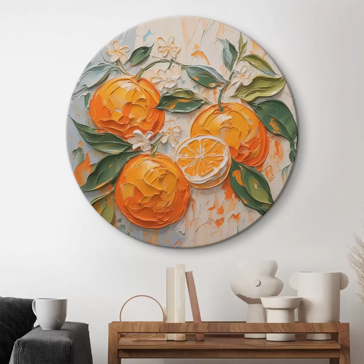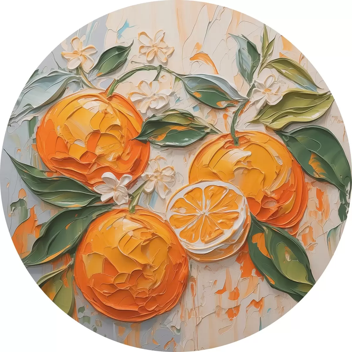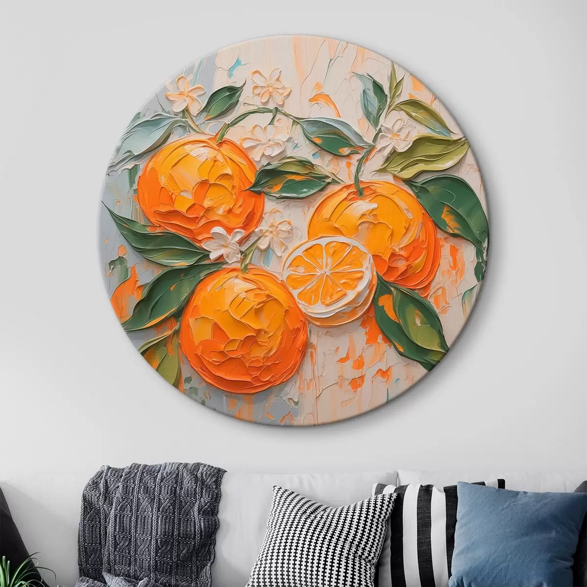 Ronde schilderijen Sinaasappels abstracte imitatie penseelstreken r42591