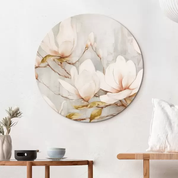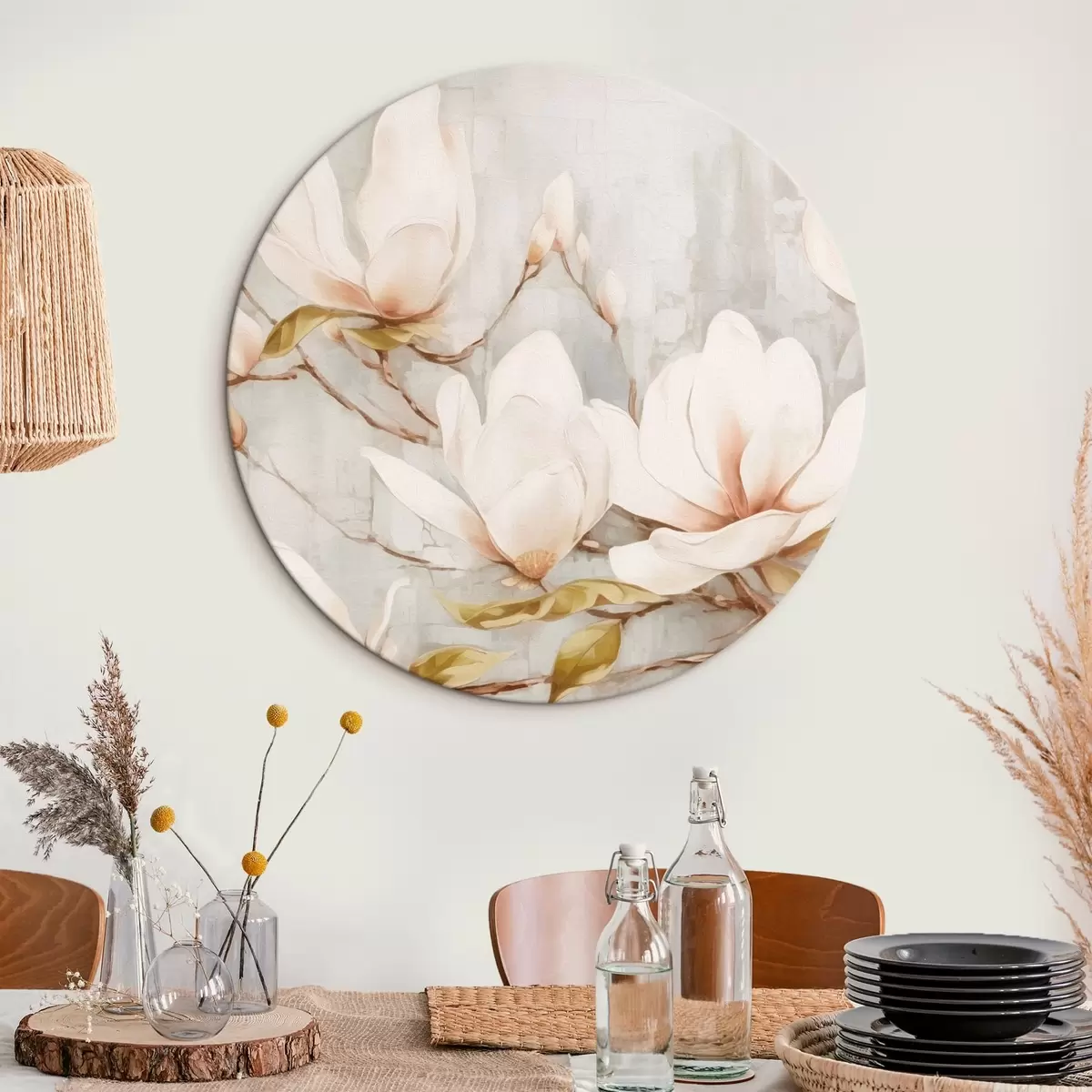 Ronde schilderijen Tak met magnolia bloemen trend r42632