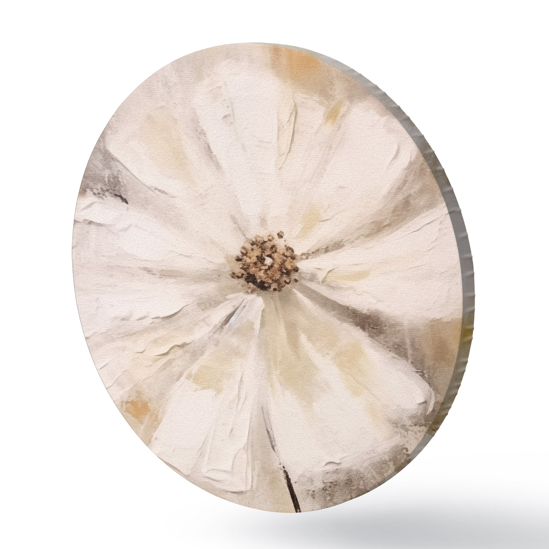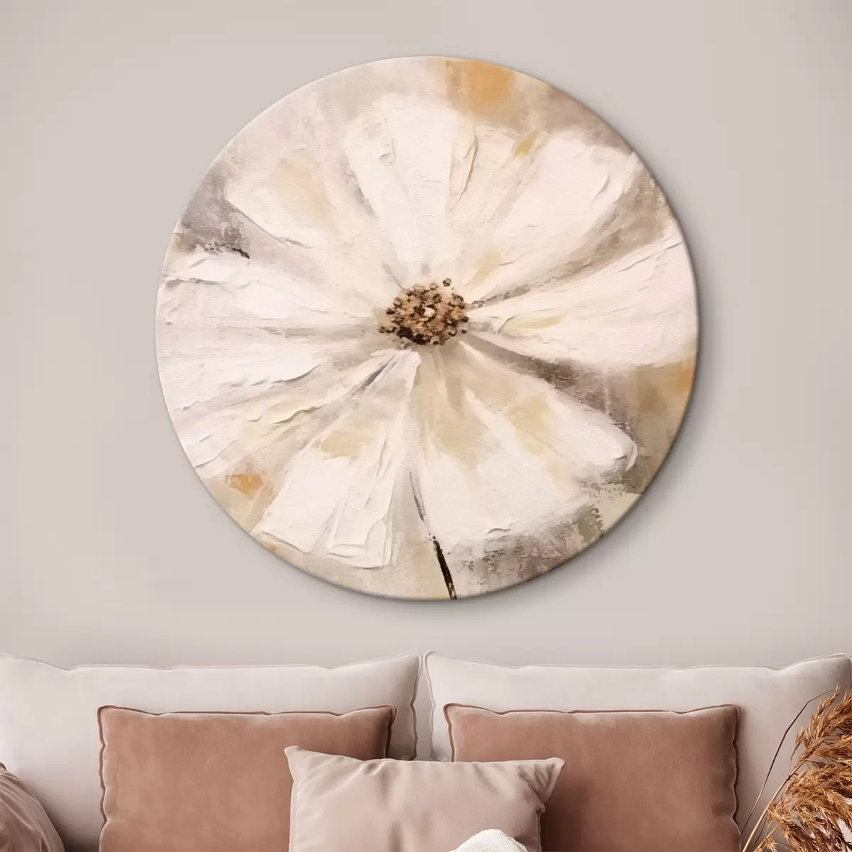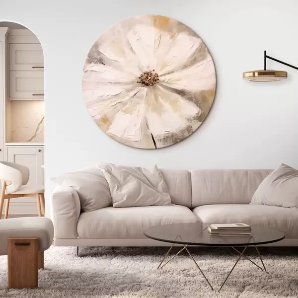 Ronde schilderijen Witte bloemen trend r42640