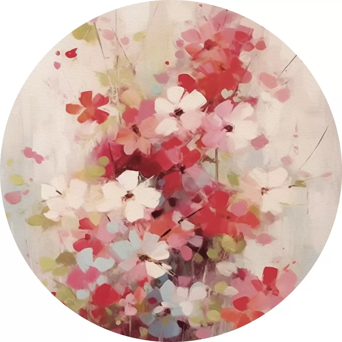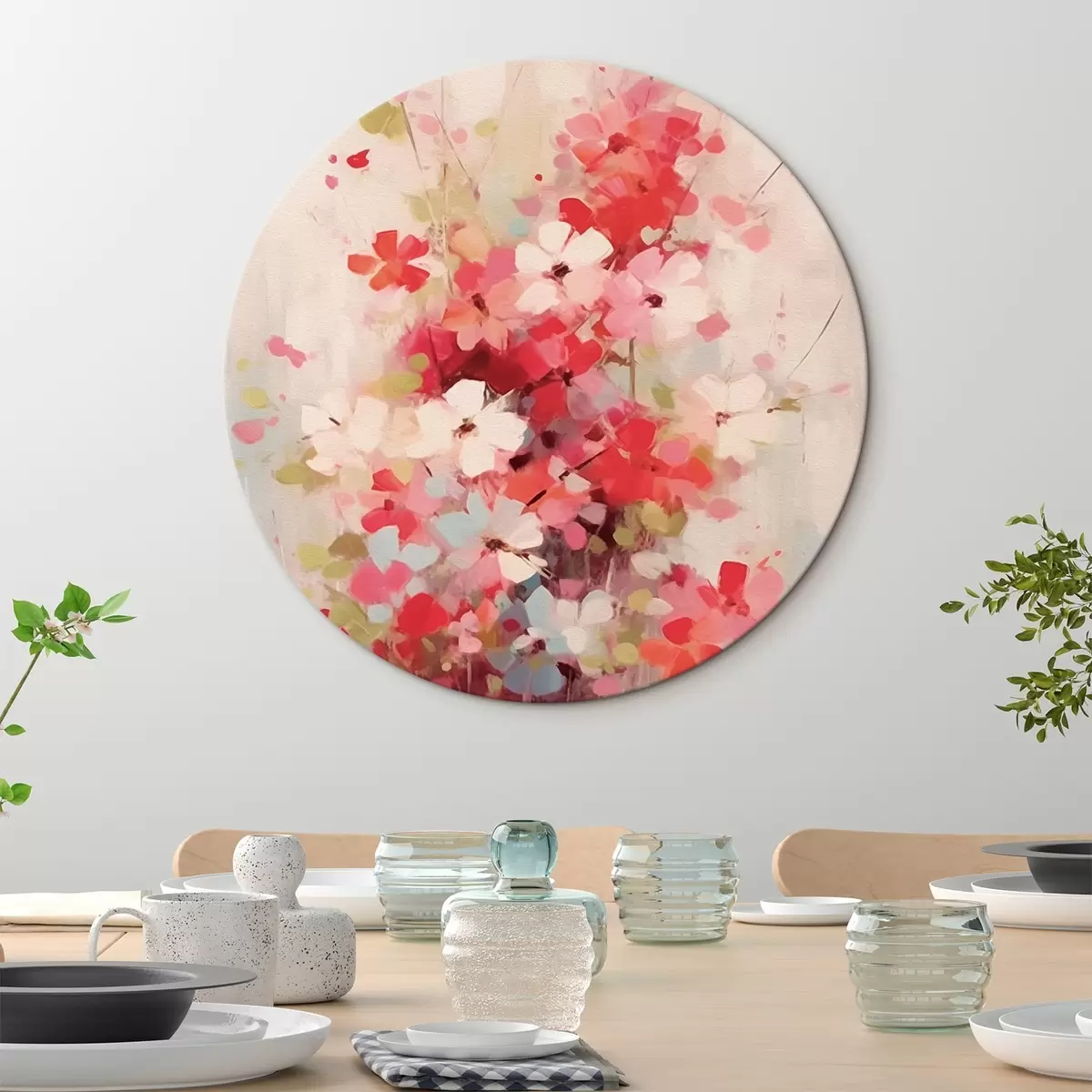 Ronde schilderijen Kleurrijke bloemenstruik r42643