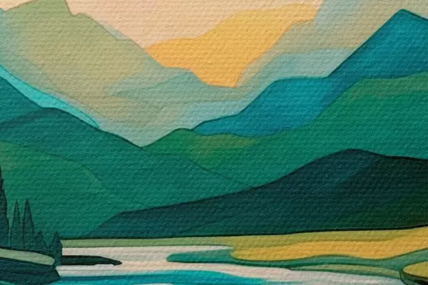 Afbeelding Landschap met rivier in abstracte stijl Nr r42652