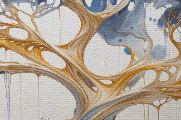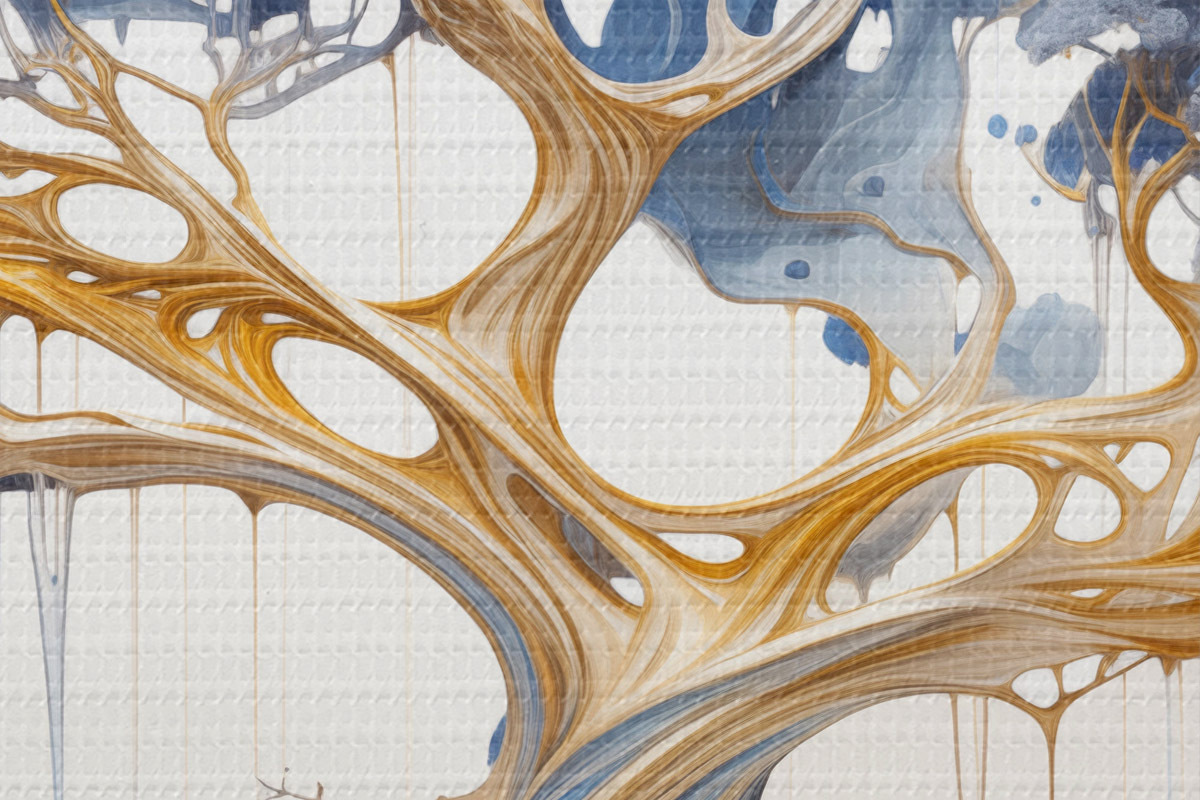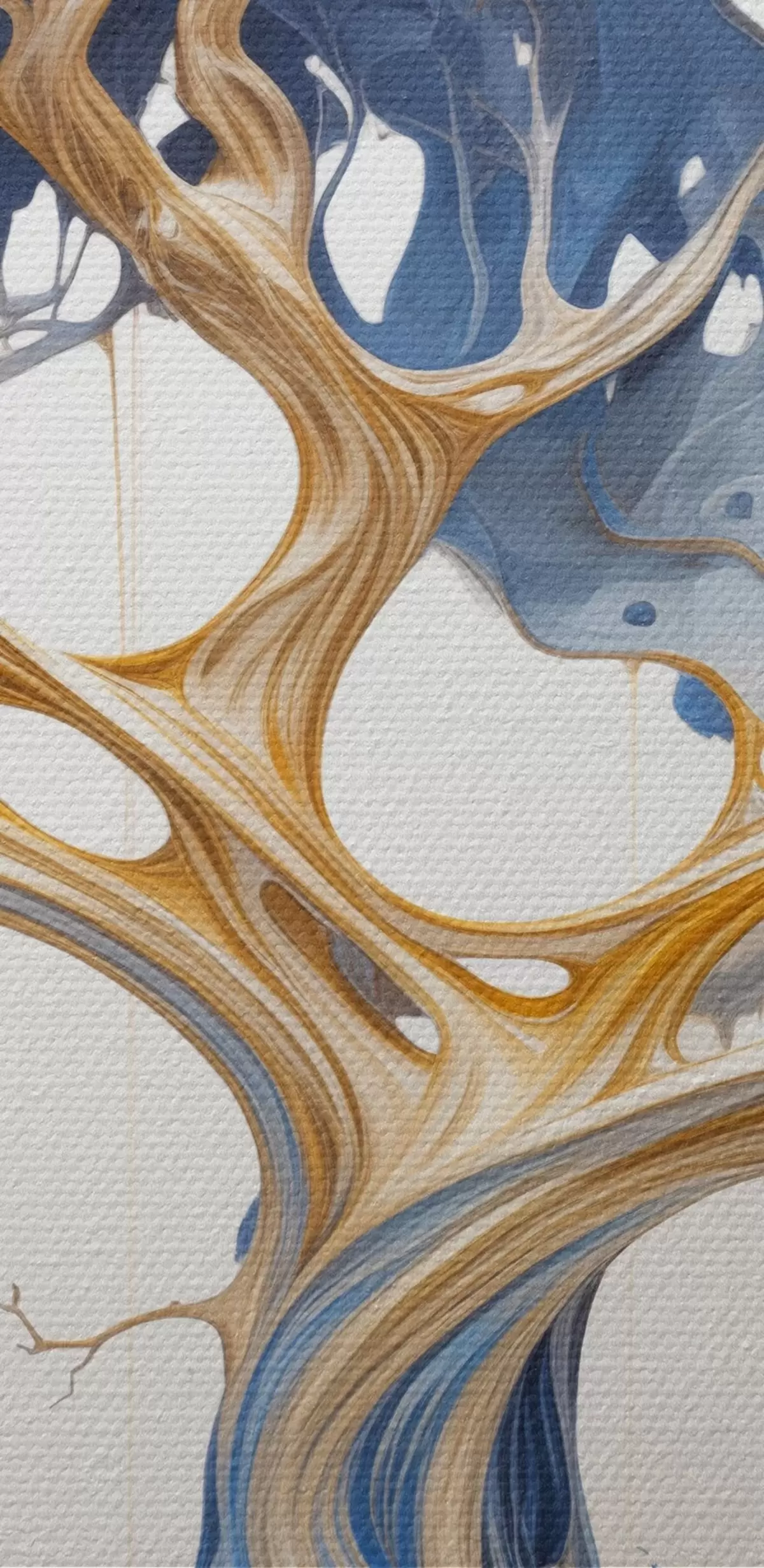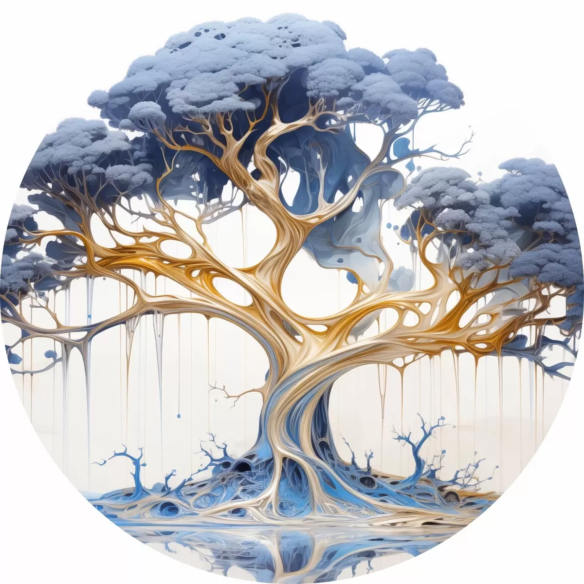 Afbeelding Een gestileerde boom met ingewikkelde takken en gebladerte, met een mix van blauwe en gele tinten Nr r42722