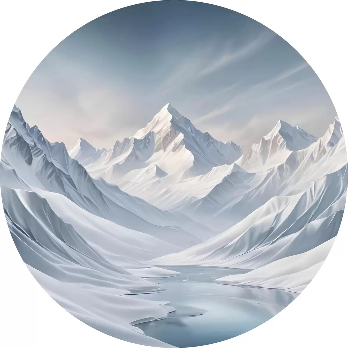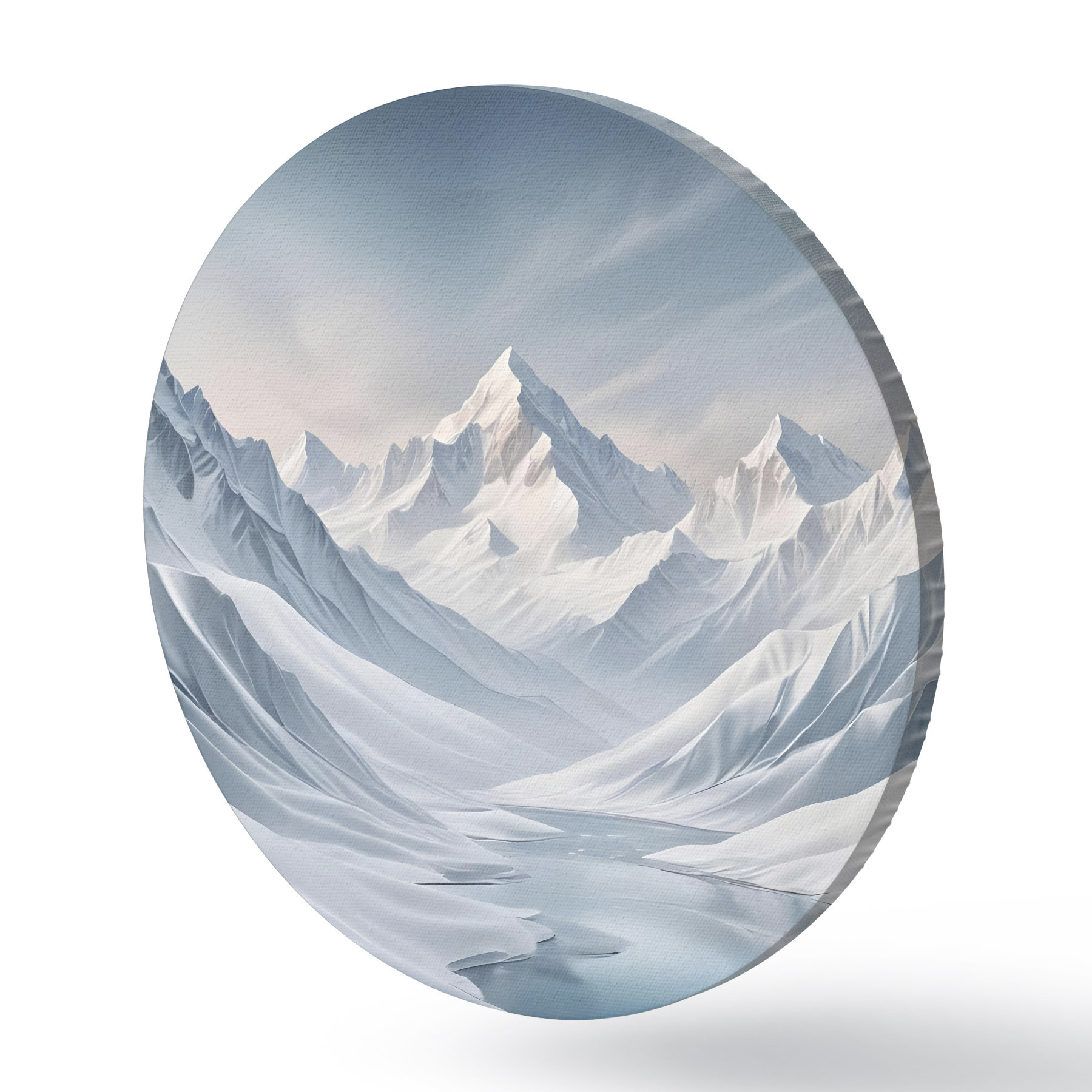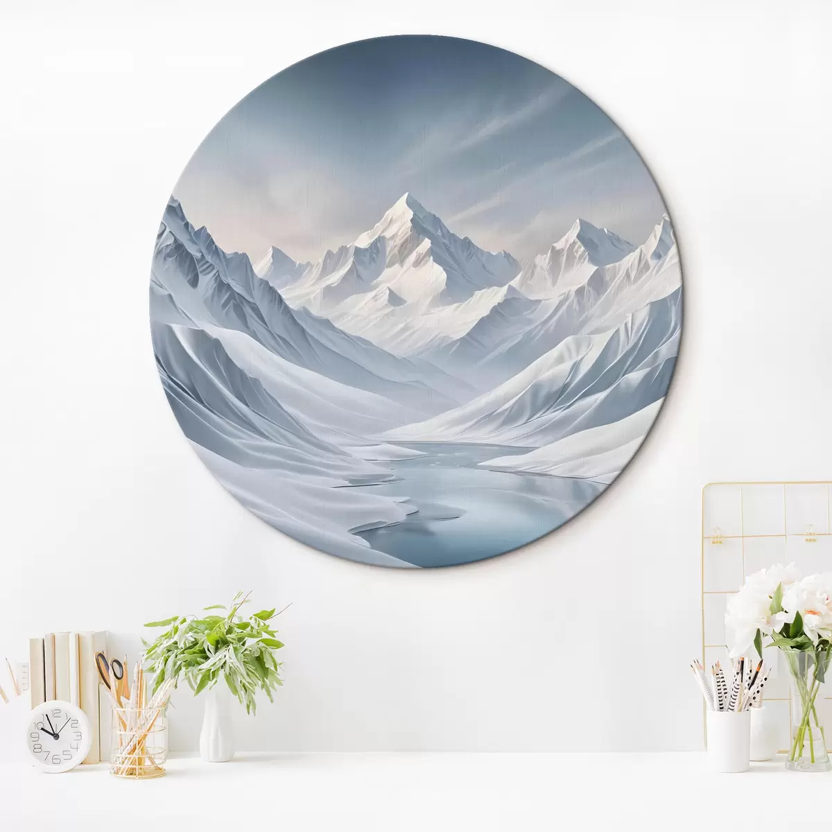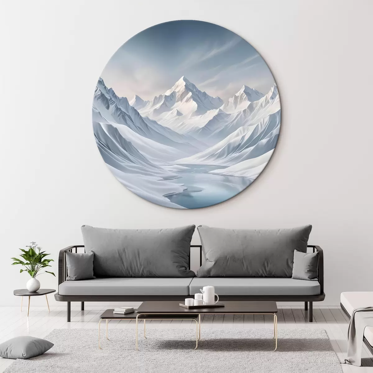 Ronde schilderijen Besneeuwde bergen met scherpe pieken en een zacht verlopende lucht die overgaat van lichtblauw naar lichtblauw r42724