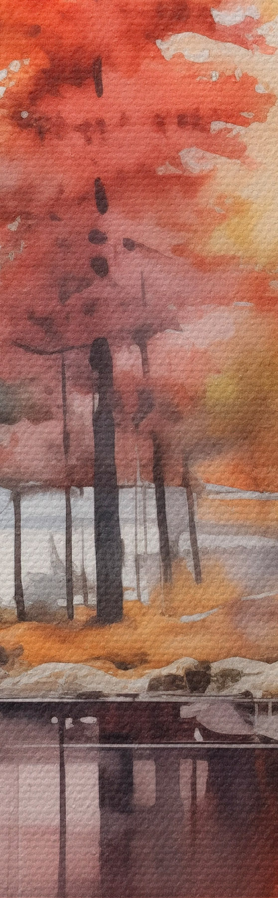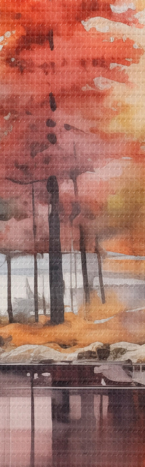 Afbeelding Aquarelachtig landschap met een meer omringd door bomen in levendige herfstkleuren Nr r42727
