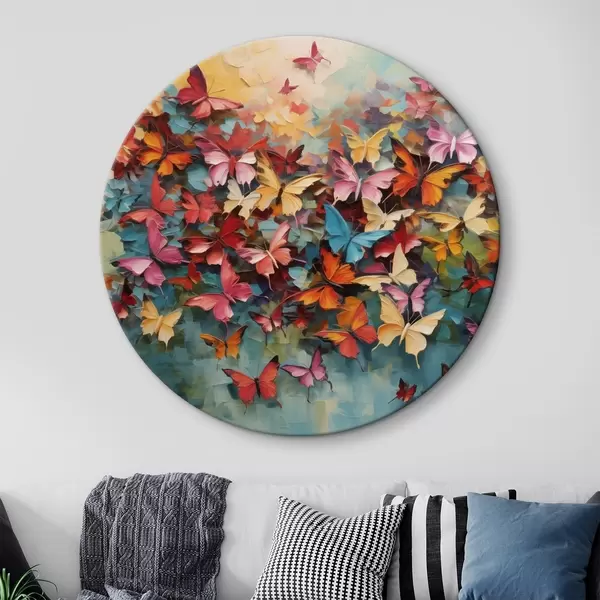 Ronde schilderijen Een levendige reeks vlinders in verschillende kleuren imitatie van olieverfschilderijen r42728