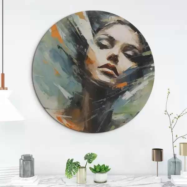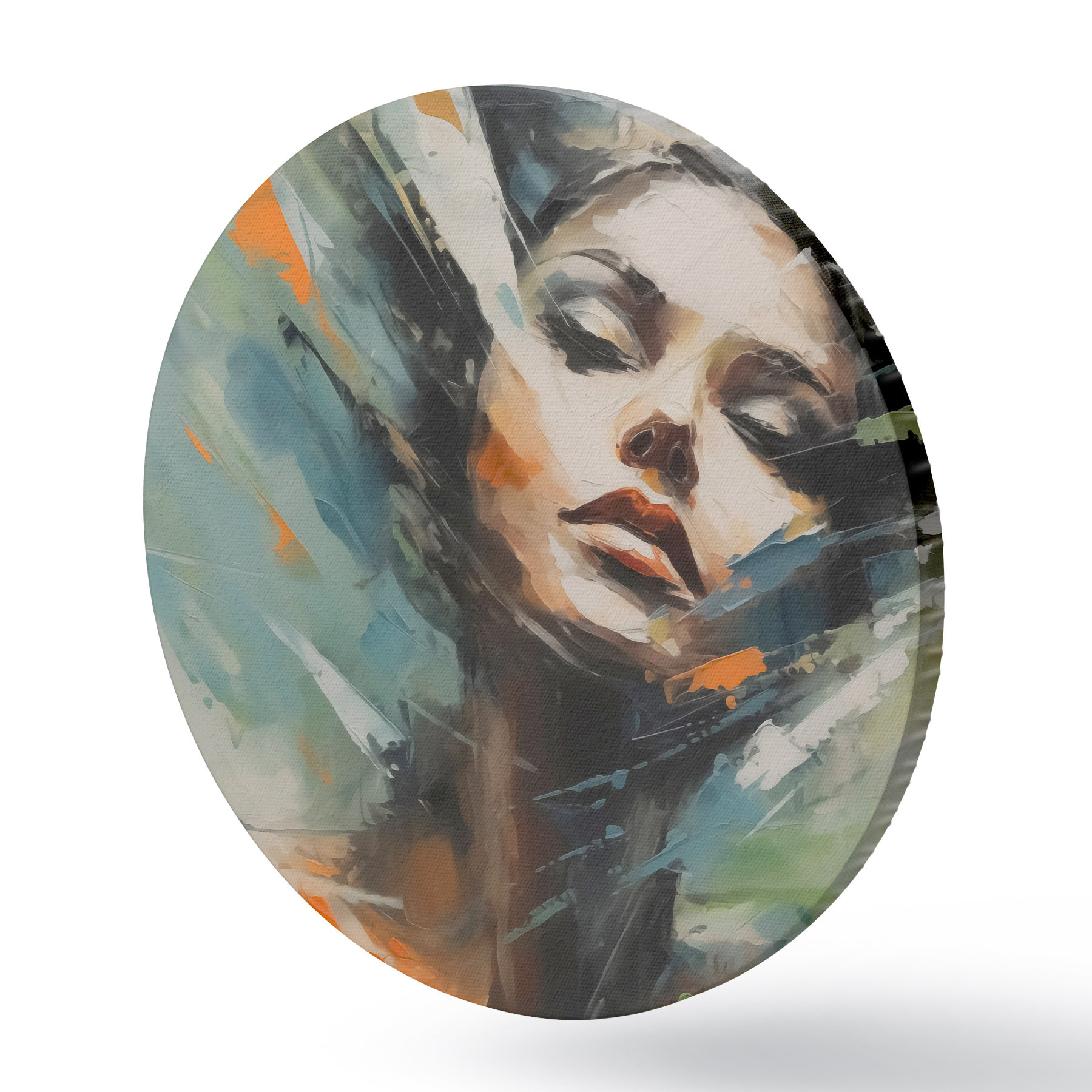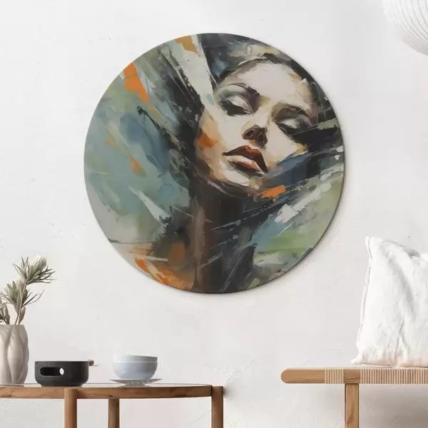 Ronde schilderijen Meisje imitatie van abstract schilderij r42751