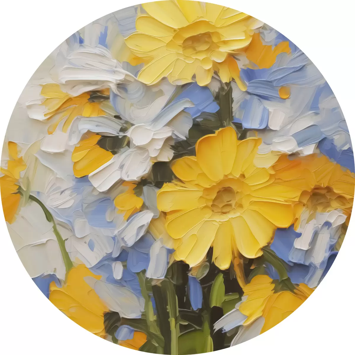 Ronde schilderijen Abstracte bloemen imitatie van schilderstreken r42753
