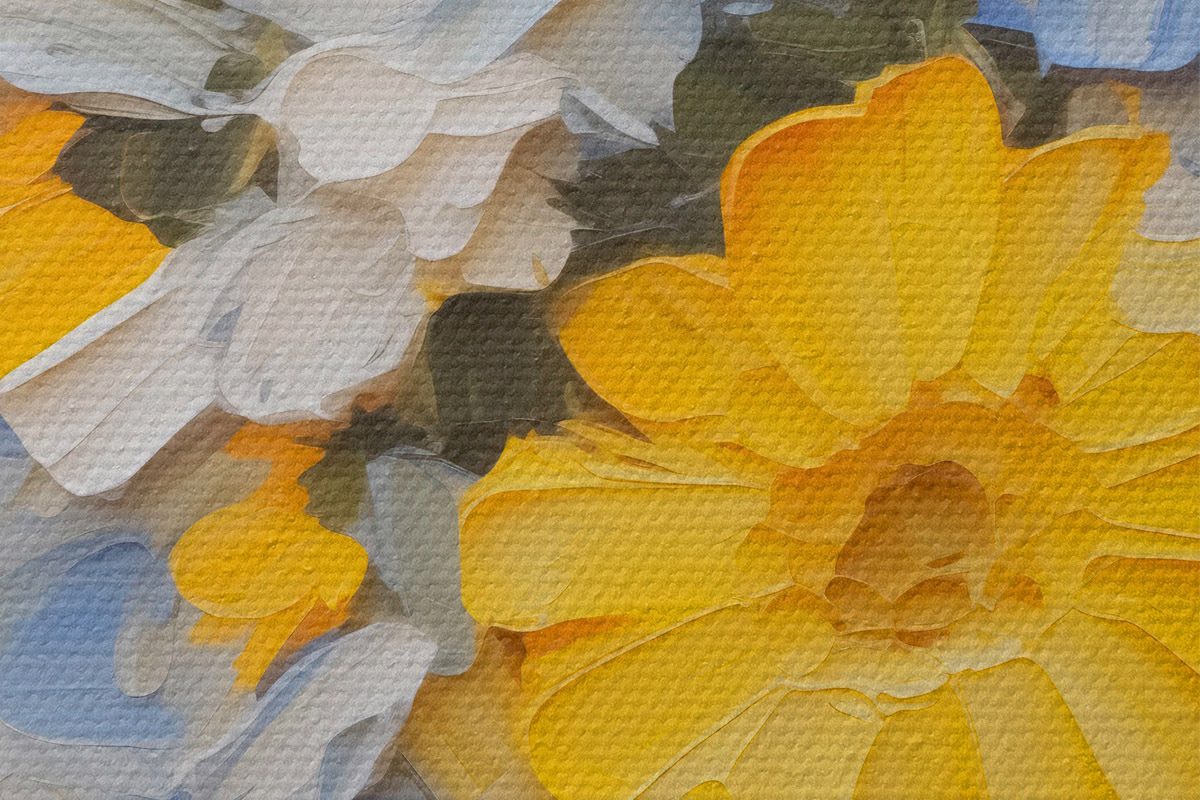 Er zijn drie soorten materiaal te bestellen: Economic Canvas - een dicht en duurzaam materiaal voor digitaal printen, identiek aan schildersdoek, waterdicht oppervlak, realistische weergave van details, materiaal met gemiddelde korrel. Premium Canvas - de textuur lijkt op die van schildersdoek (verweven kleine draden). Zachte, gedetailleerde reproductie van de afbeelding op een mat oppervlak. Eco-Premium - hoogwaardige 100% katoenen stof. Dankzij de natuurlijke katoenvezels is het materiaal duurzaam en slijtvast. Uitstekende kleurweergave en detail.