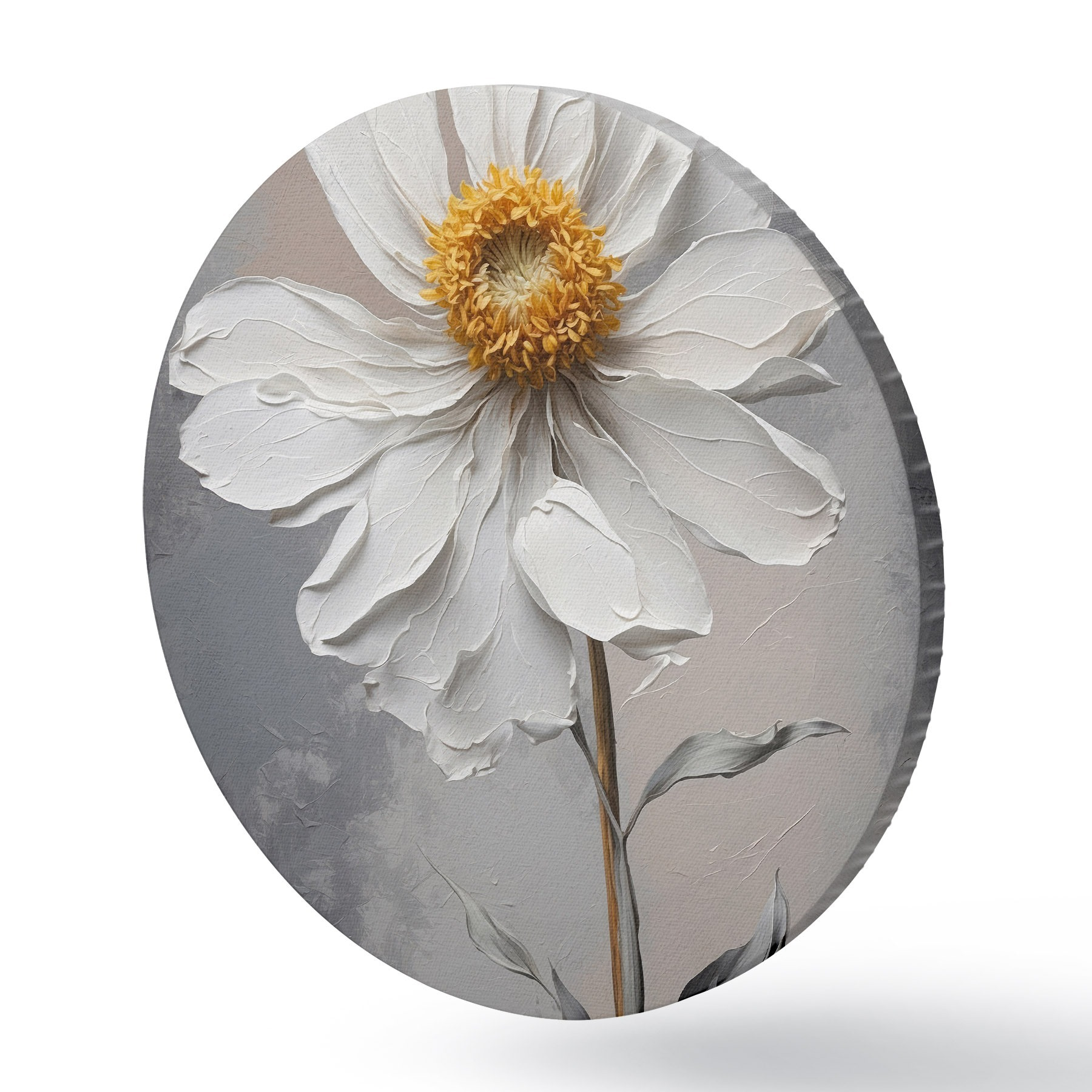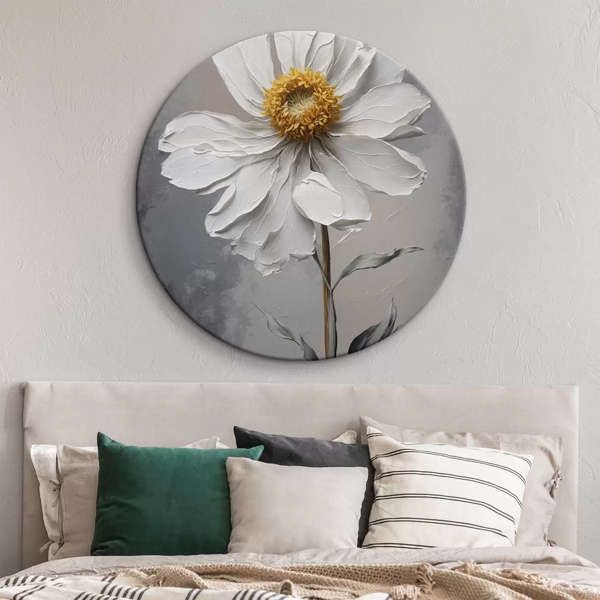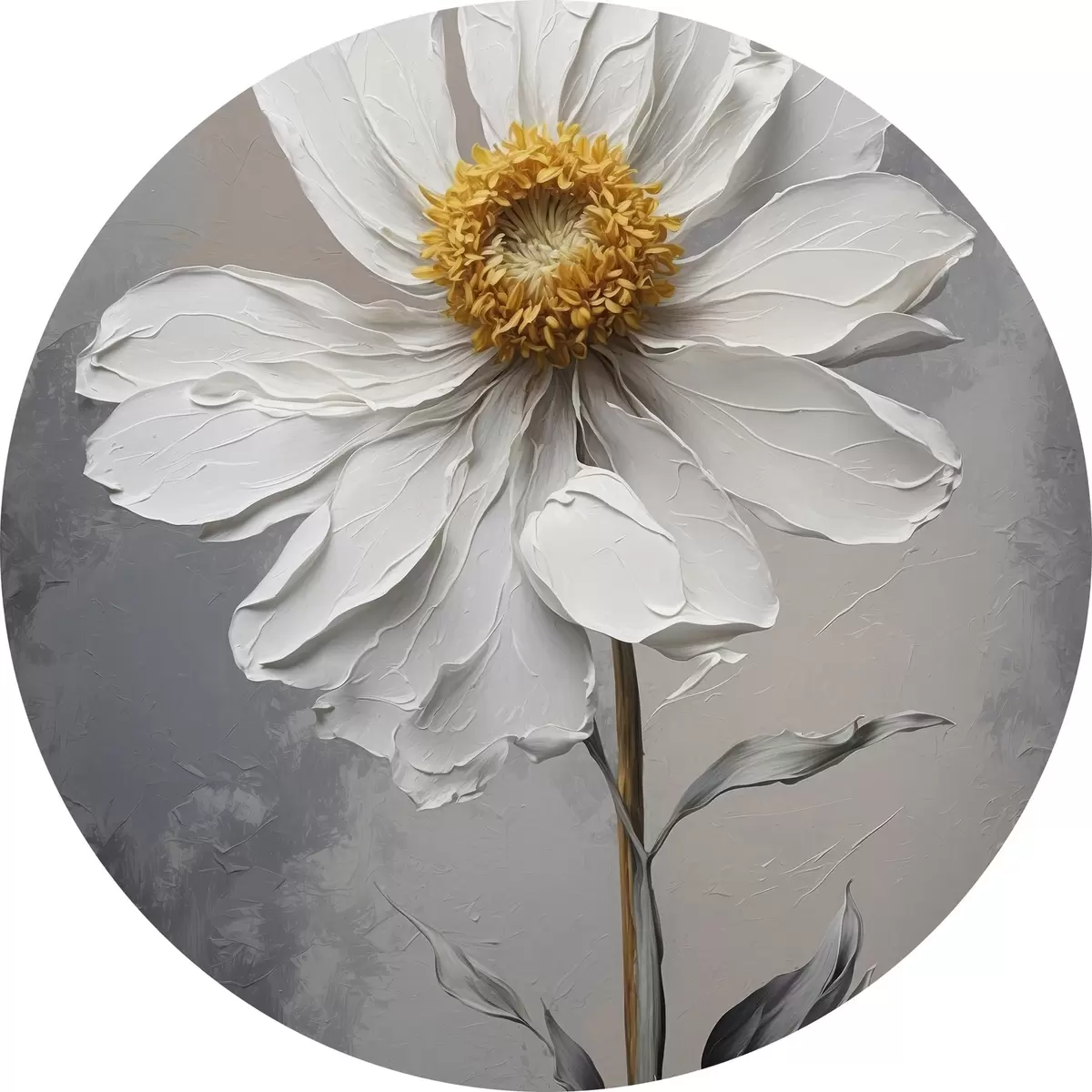Ronde schilderijen Kamille op witte achtergrond in olieverfschilderij stijl r42758