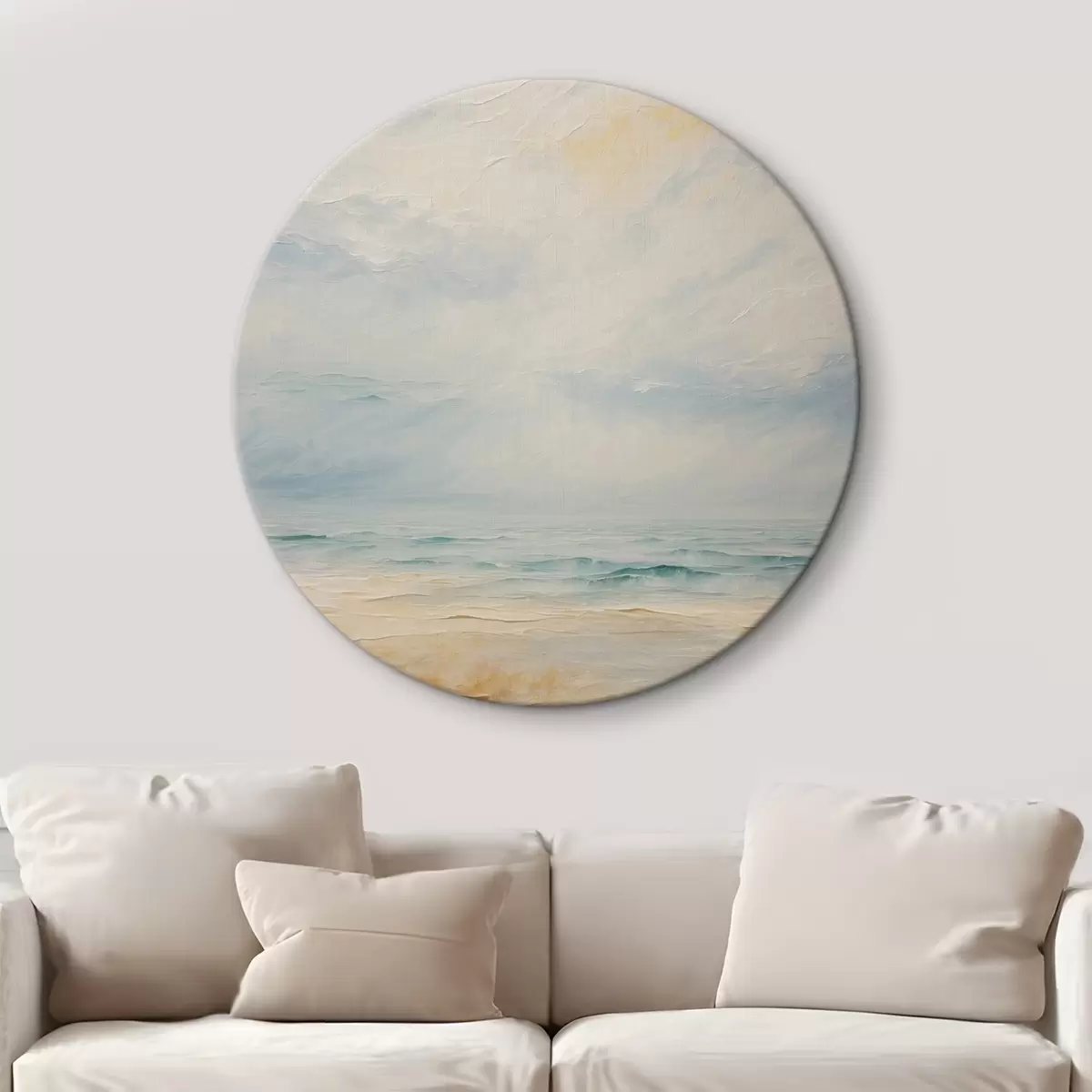 Ronde schilderijen rea strand in acrylschilderij stijl r42759