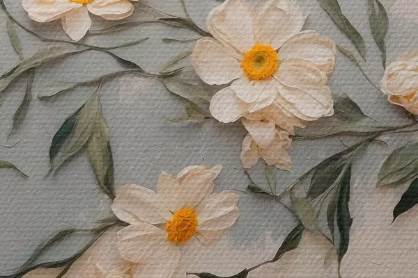 Afbeelding Witte bloem en blad op witte en grijze achtergrond Nr r42764