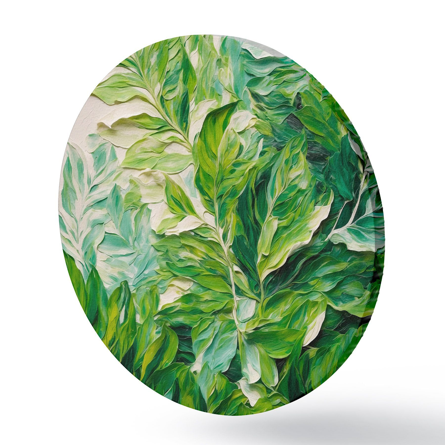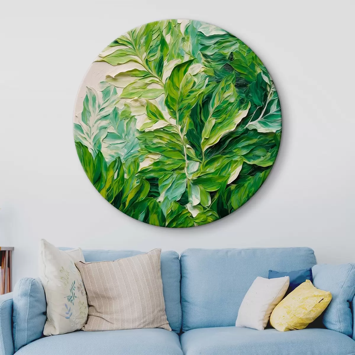 Ronde schilderijen Tropisch blad in olieverfschilderij in stijl r42767