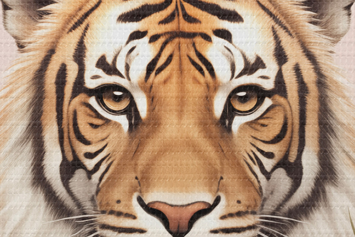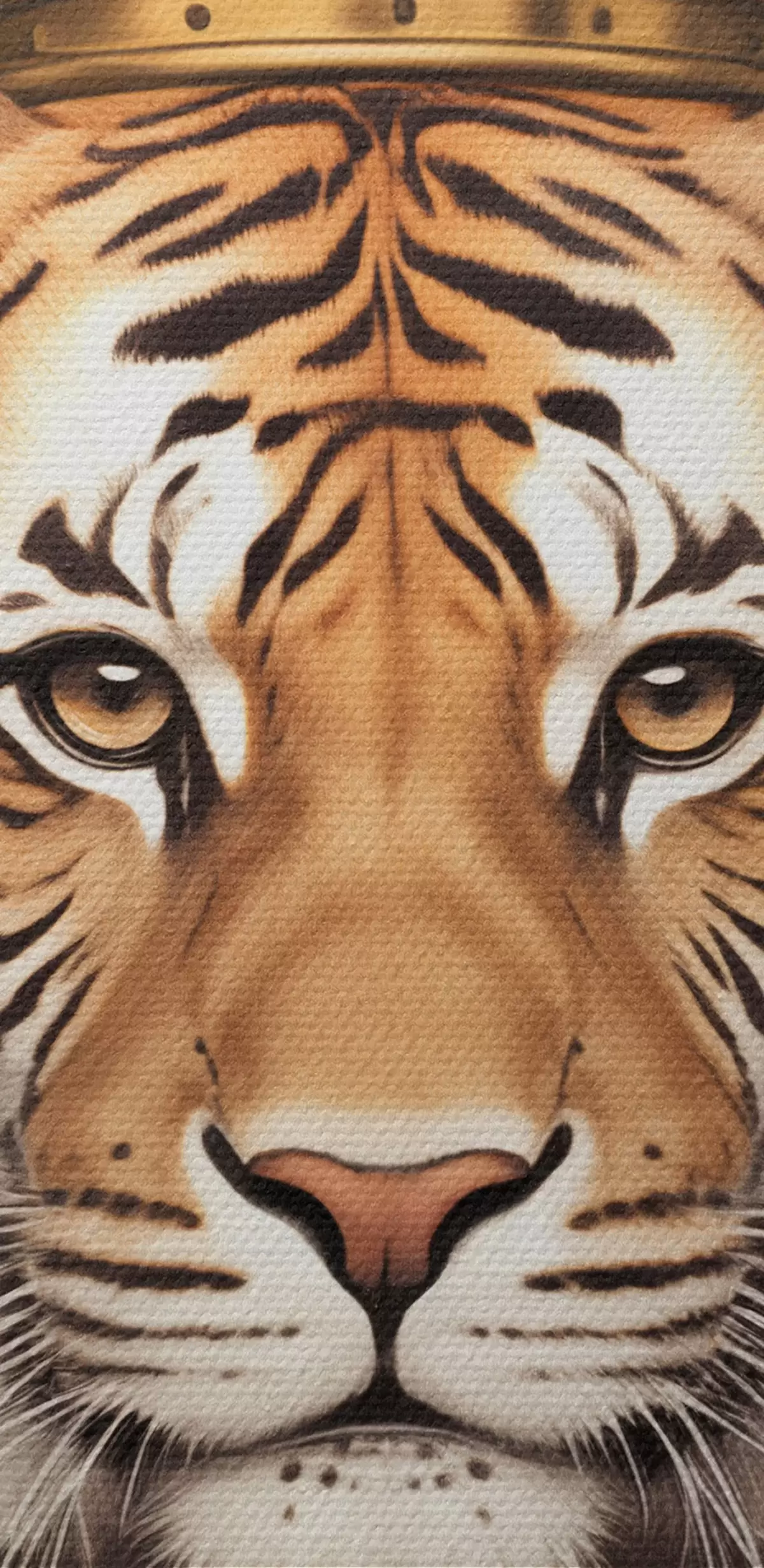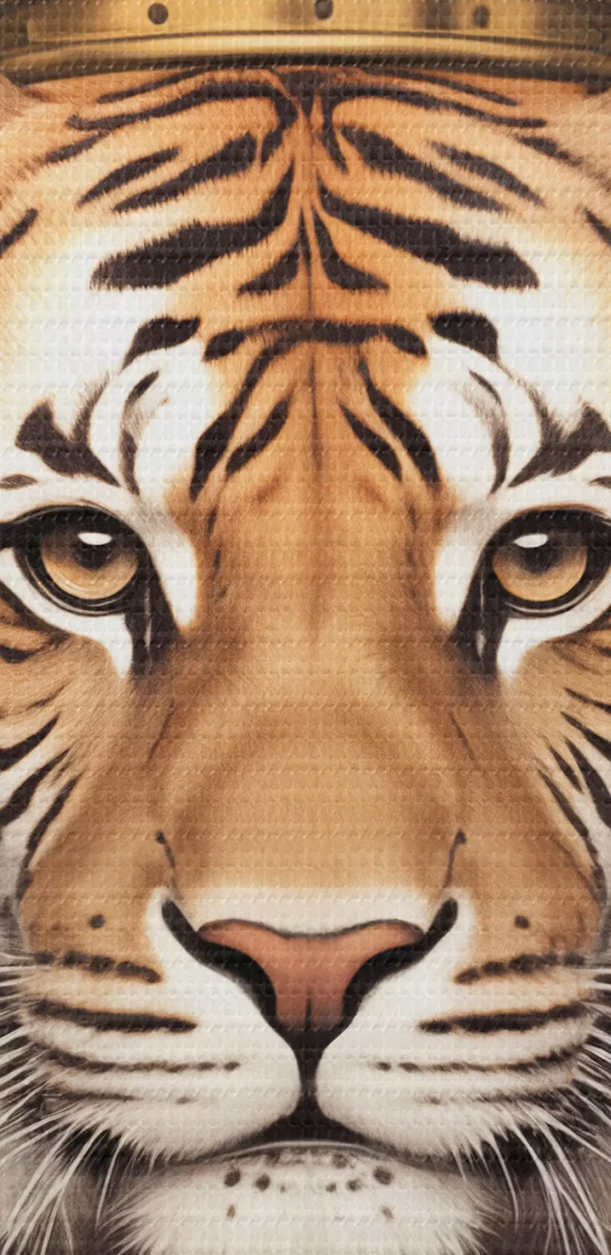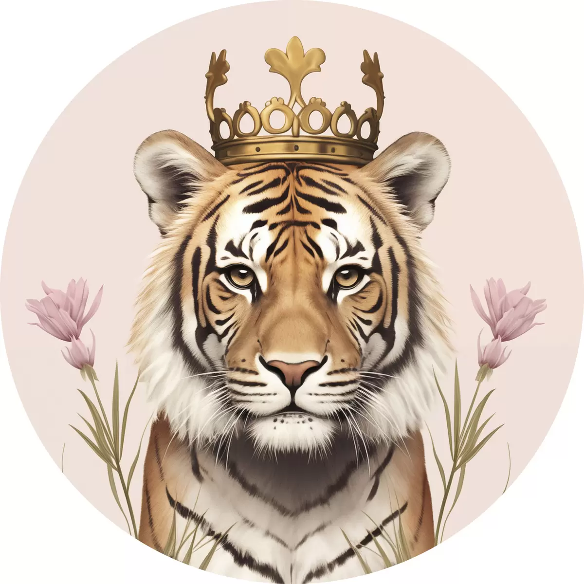 Afbeelding Tijger met kroon, roze achtergrond, tulpenbloemen Nr r42782