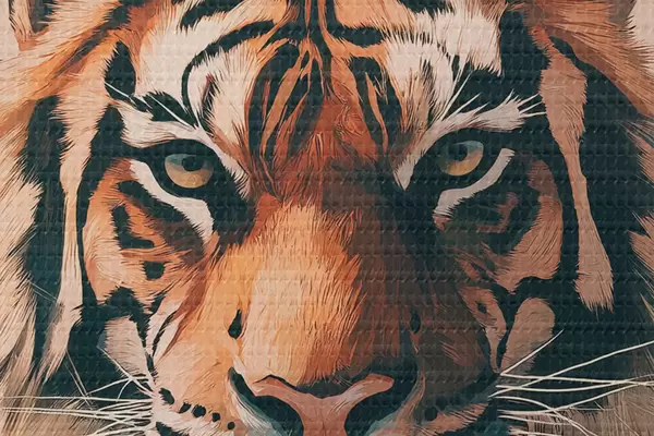 Afbeelding Tijger in een grasveld, kroon, acryltekening Nr r42783