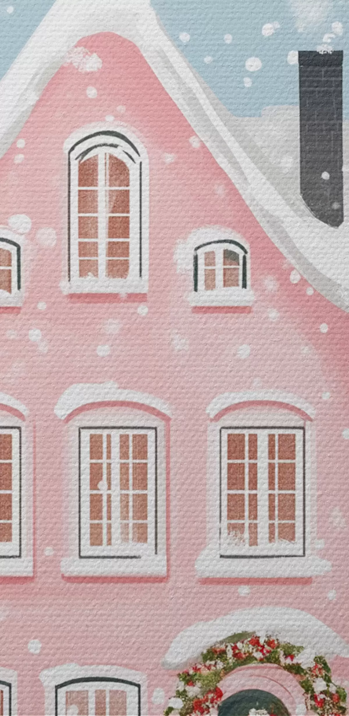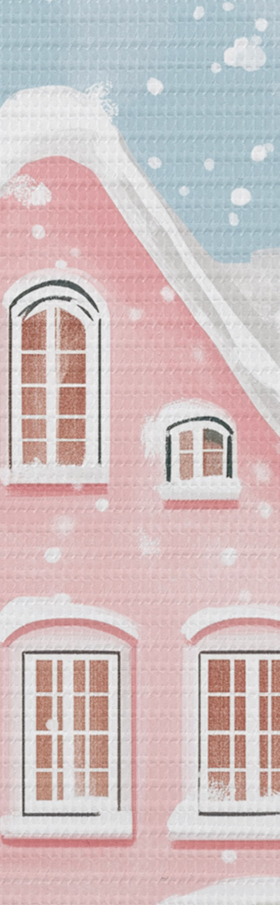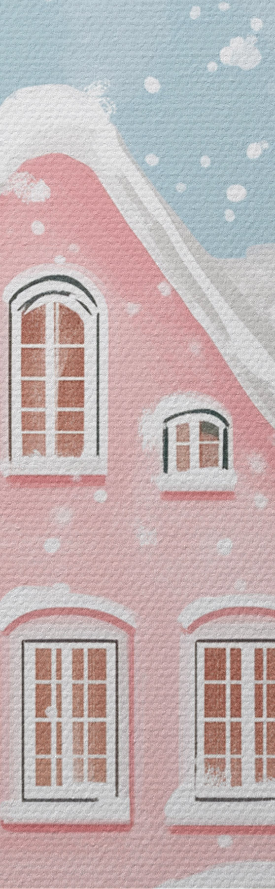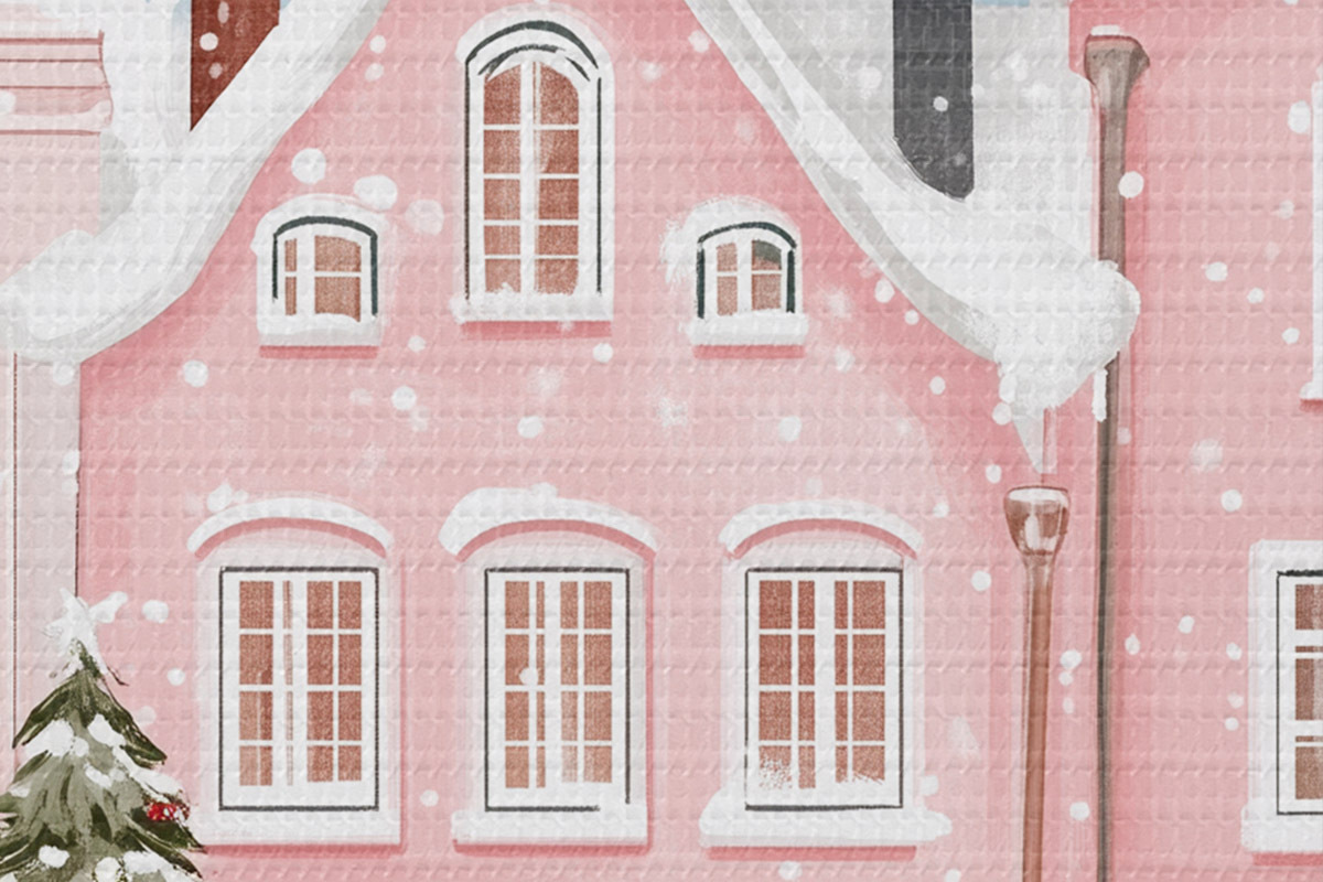Afbeelding Mooie stad met schattige roze huizen, winterse esthetiek, sneeuwvlokken Nr r42793