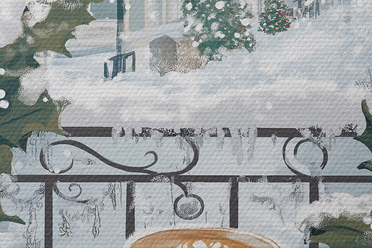 Afbeelding Winterse esthetiek, kopjes koffie, restaurant, stadsstraat Nr r42794