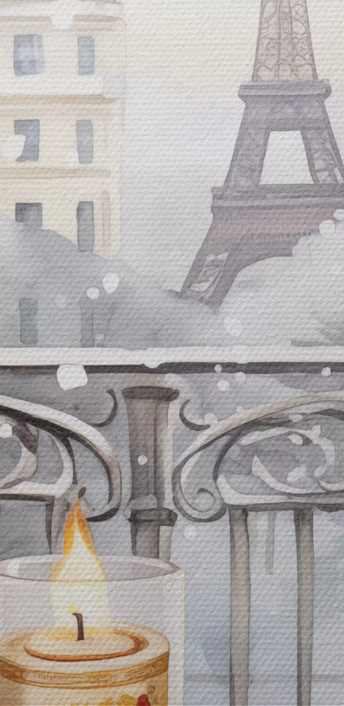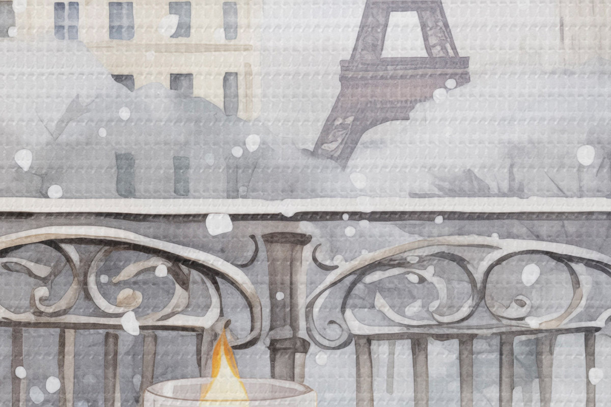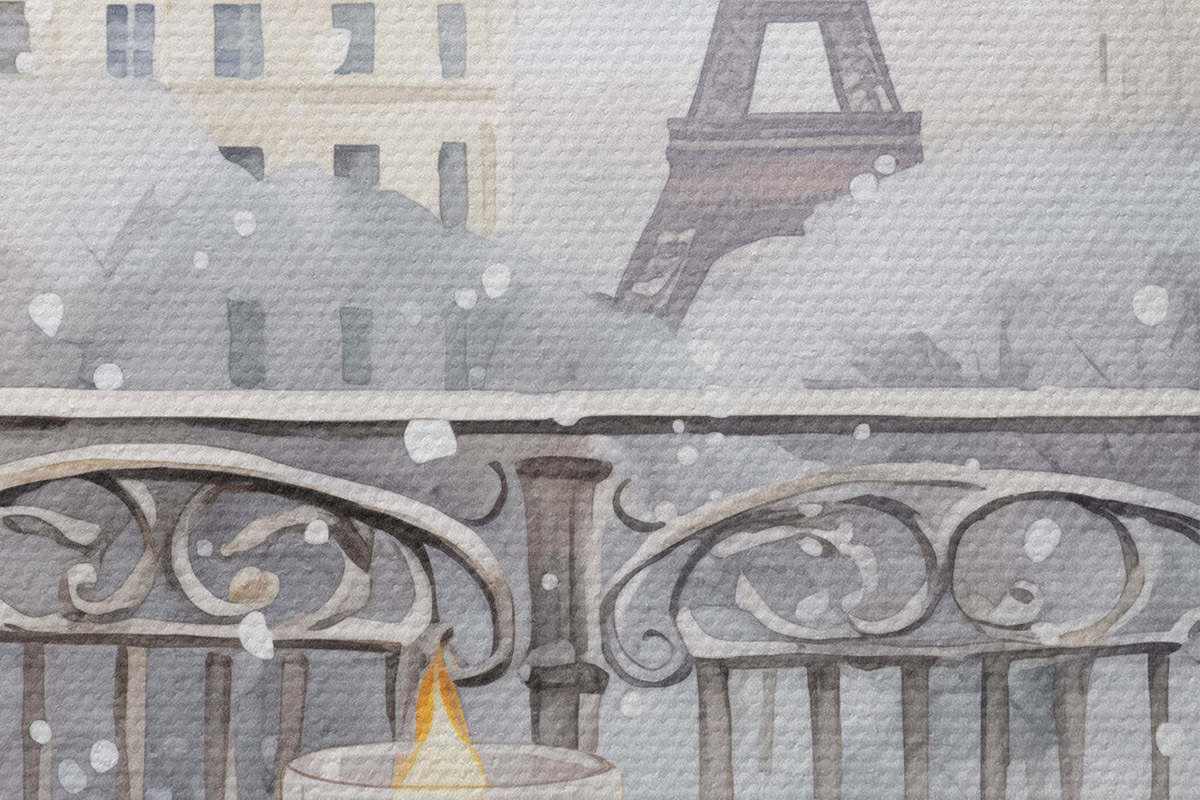 Afbeelding Mooi café in Parijs, theekopjes, romantisch uitzicht, winter, aquarel stijl Nr r42799