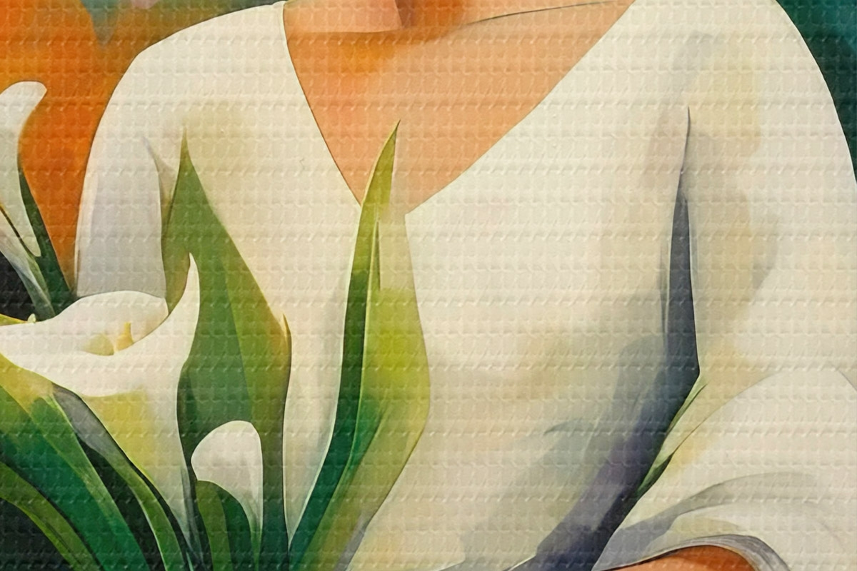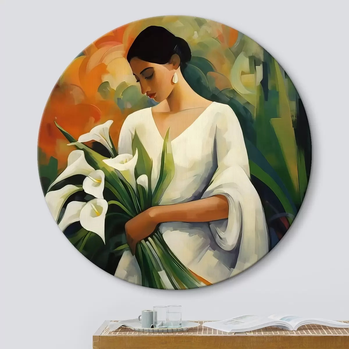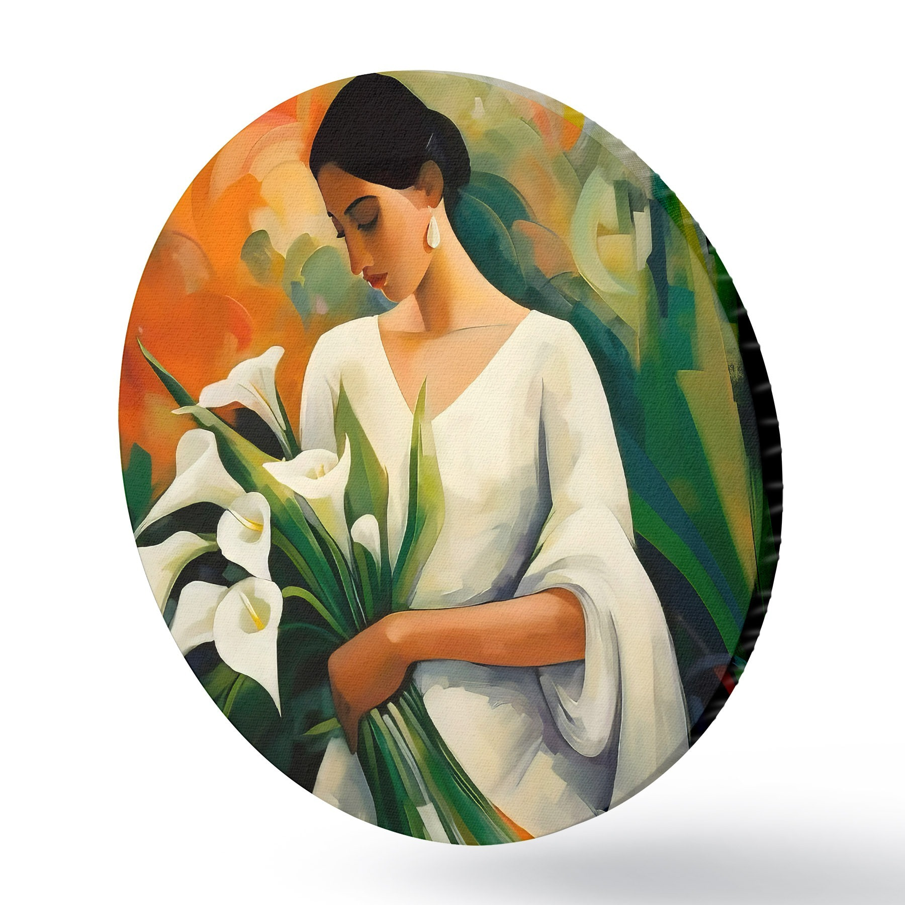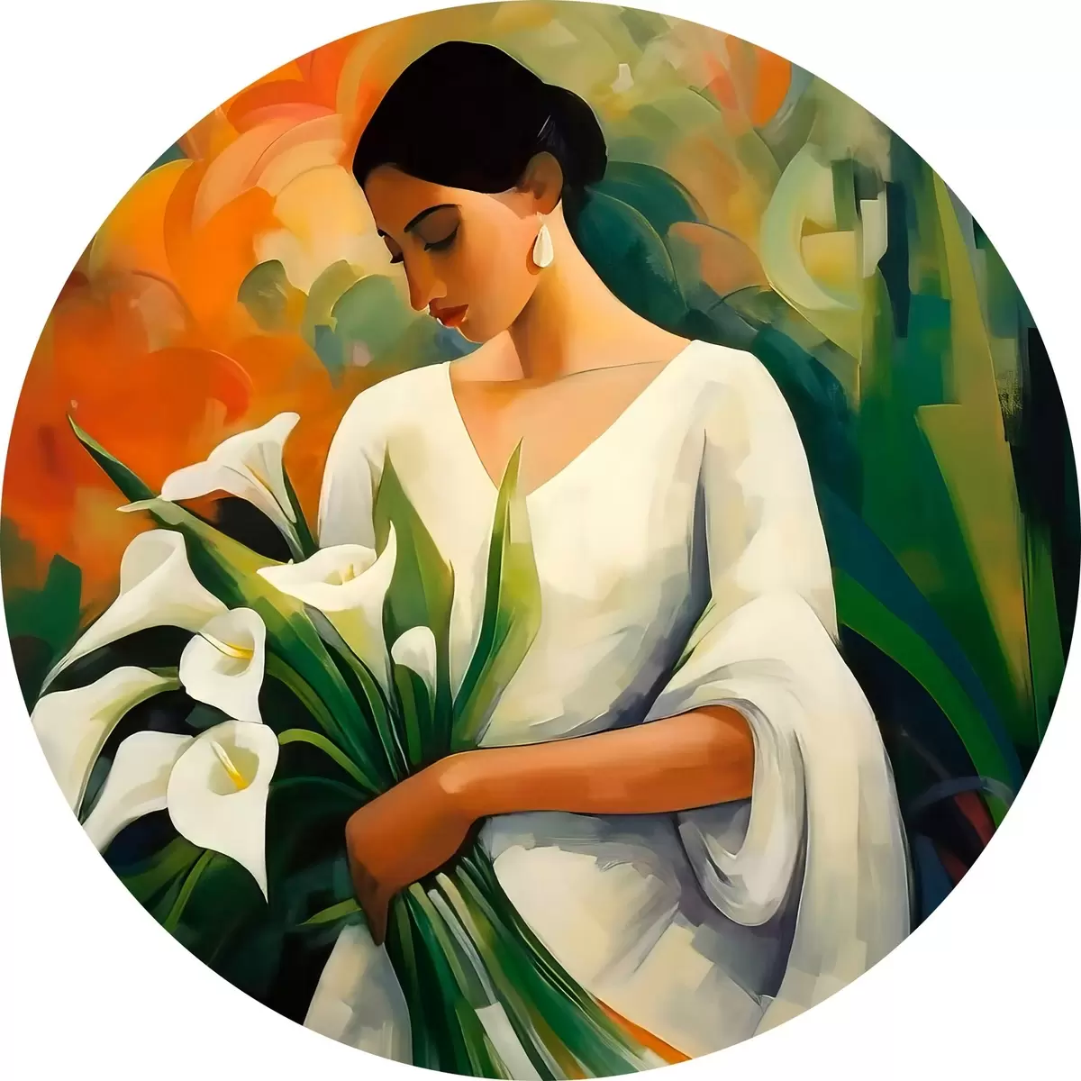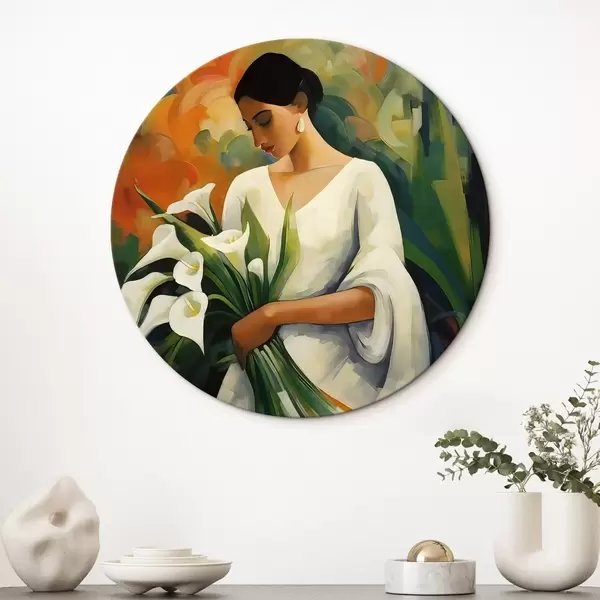 Ronde schilderijen Vrouw met een boeket aronskelken r42818