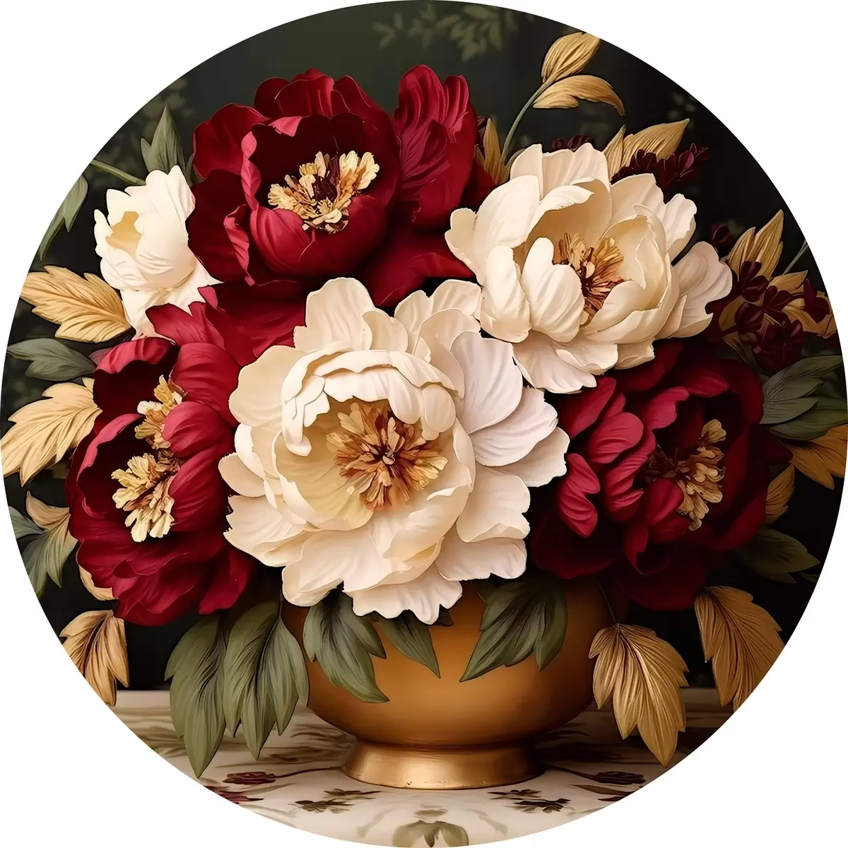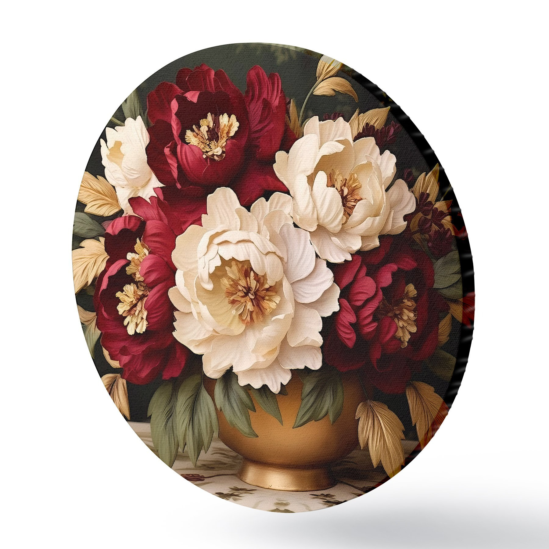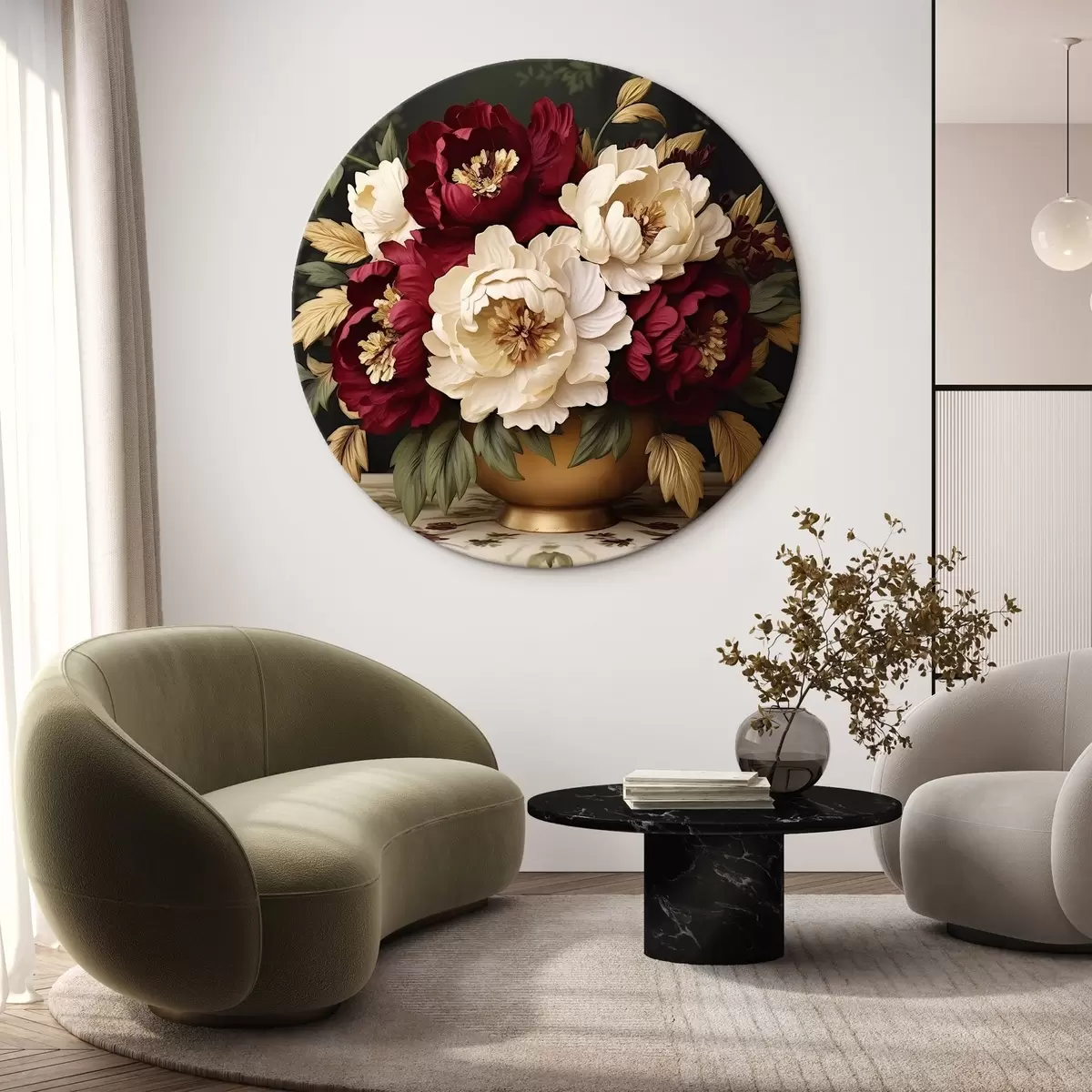 Ronde schilderijen Rode en witte pioenrozen in een vaas r42820