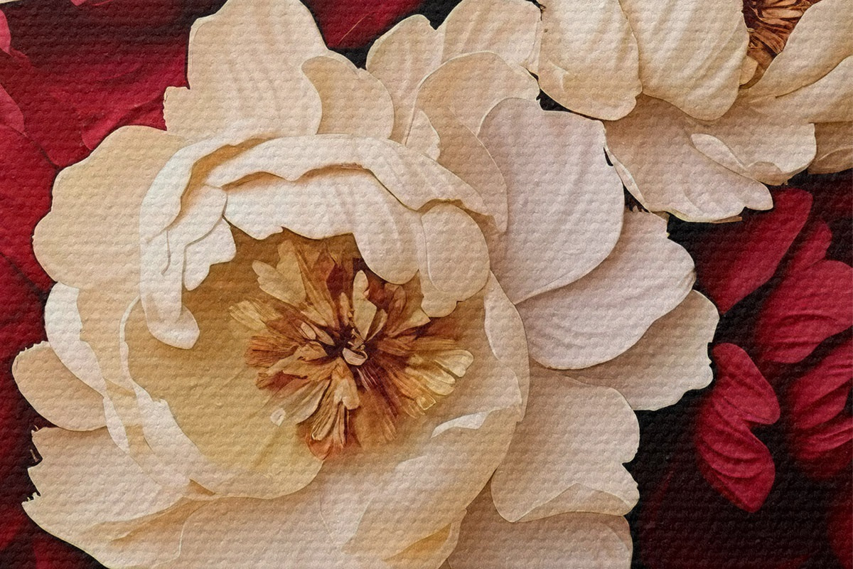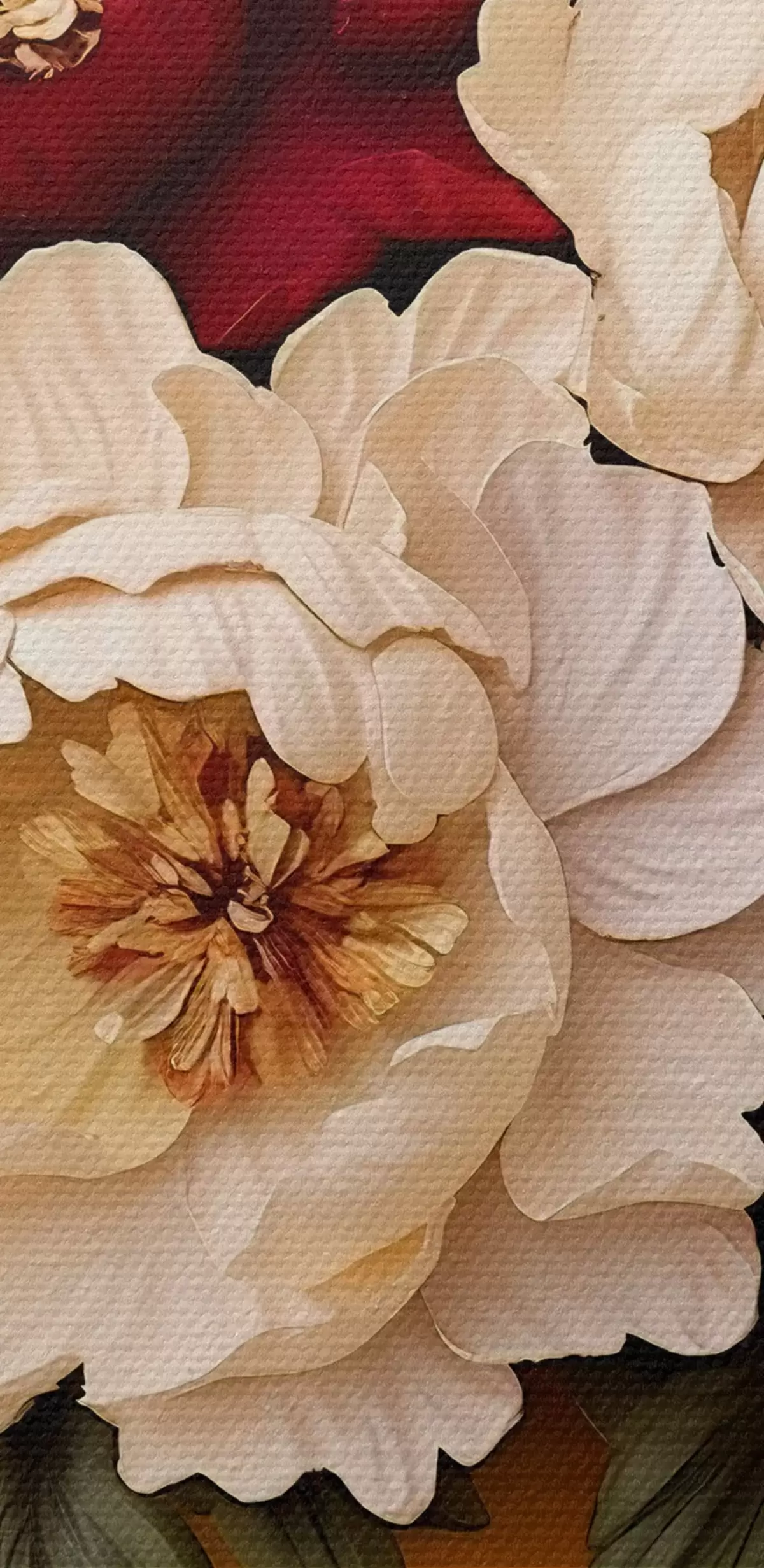 Afbeelding Rode en witte pioenrozen in een vaas Nr r42820