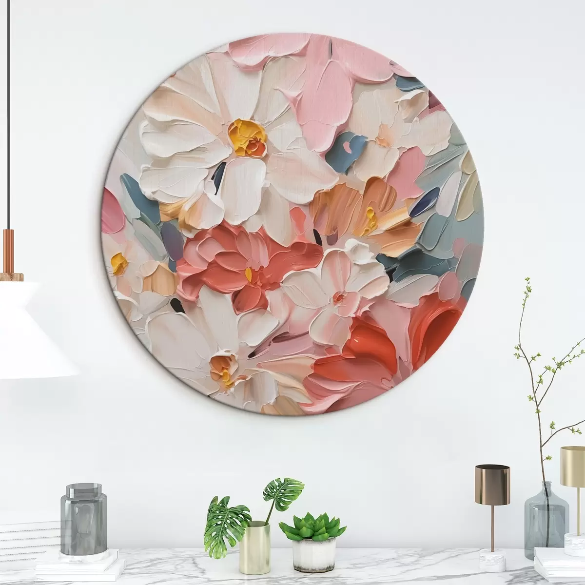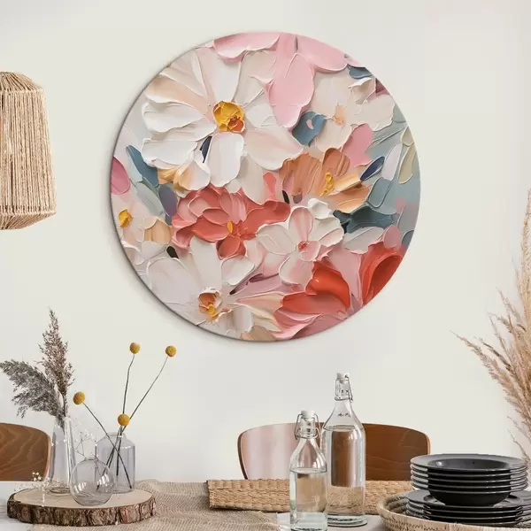 Ronde schilderijen Bloemen abstract imitatieschilderij r42843