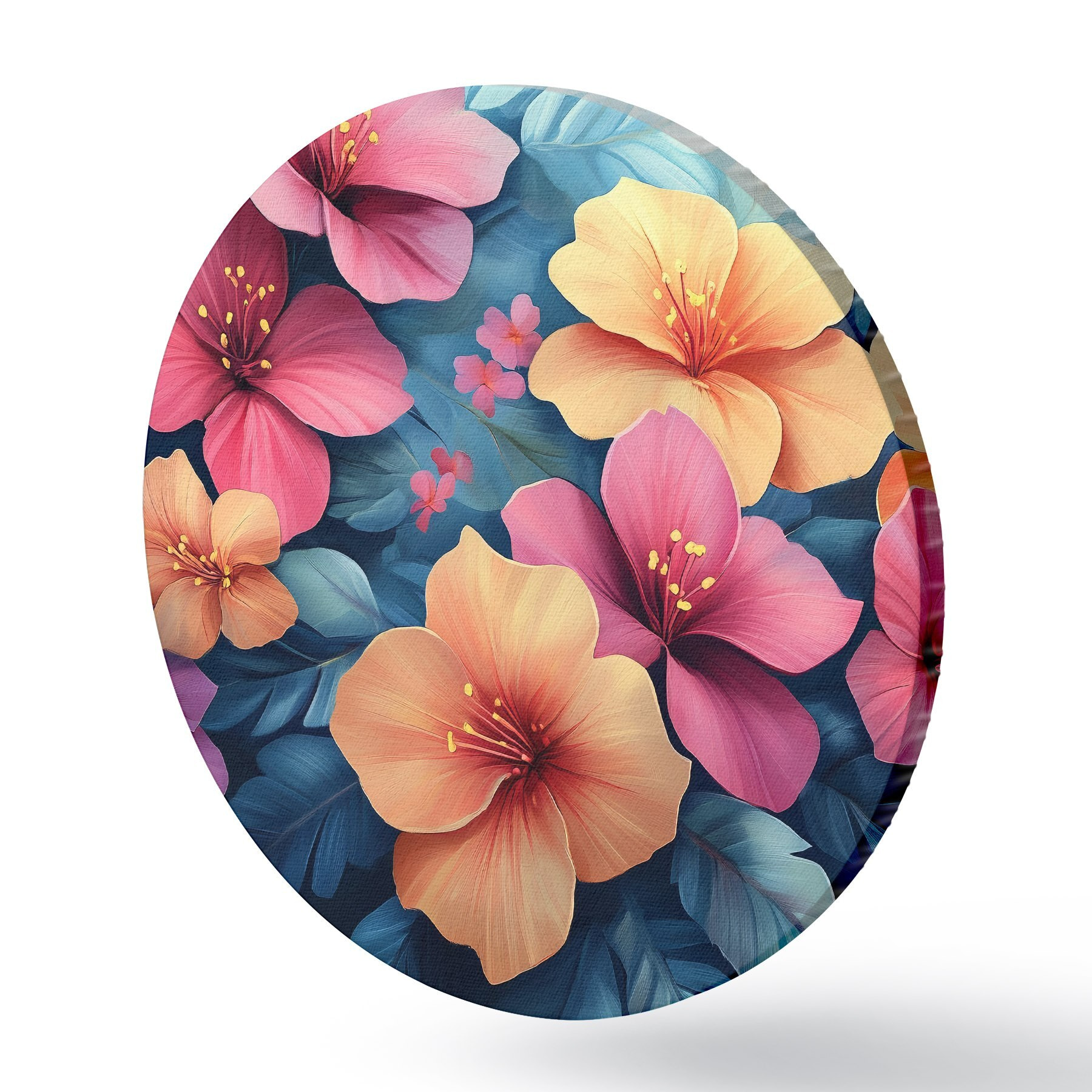 Ronde schilderijen Oranje en roze grote bloemen r42853