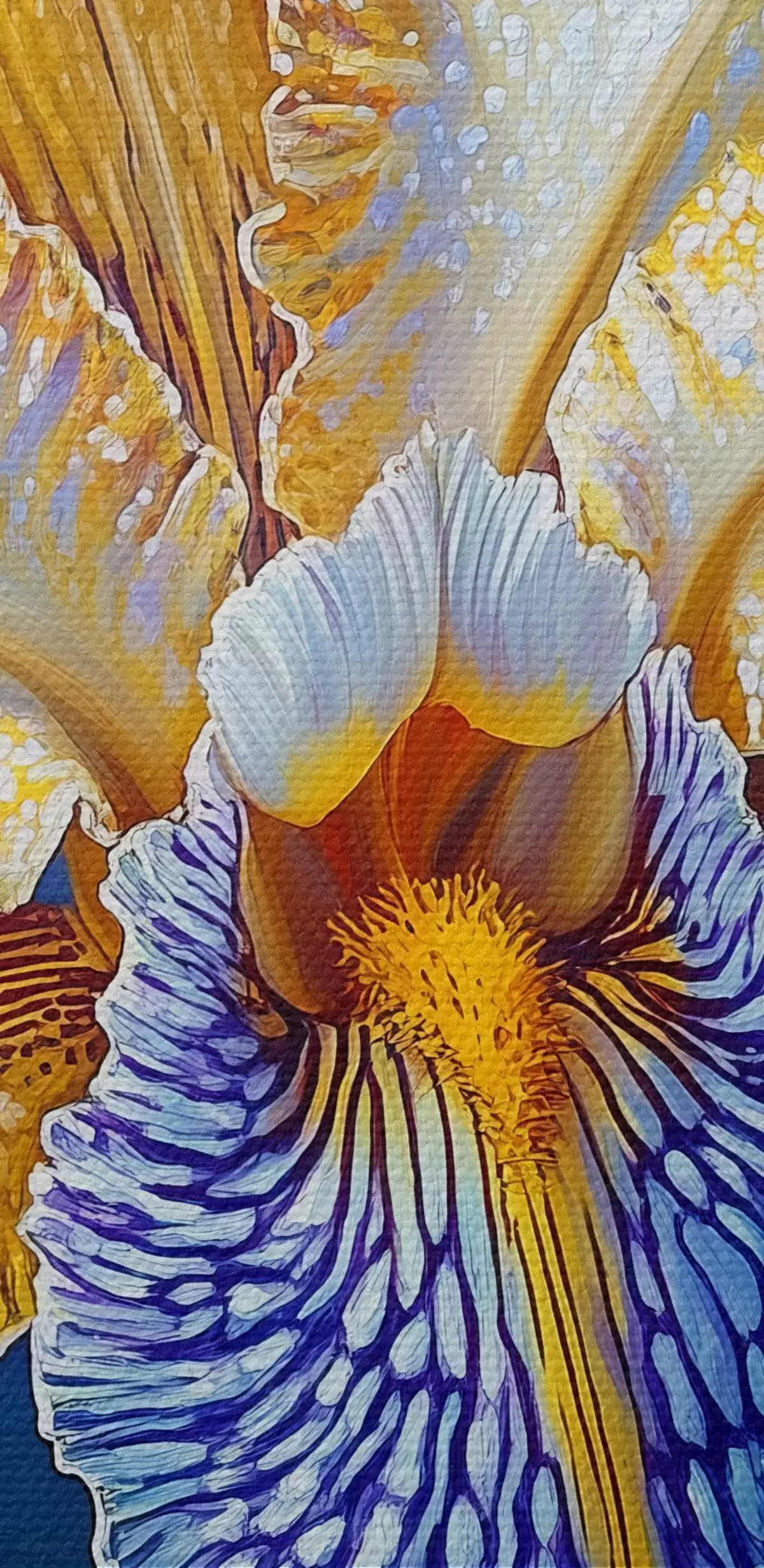 Het schilderij kan direct na ontvangst worden opgehangen. Het schilderij wordt opgespannen op een 2 cm breed houten spieraam.