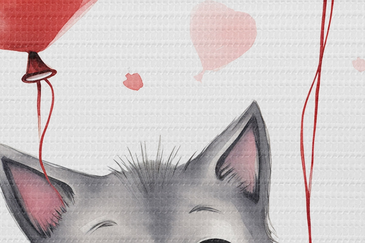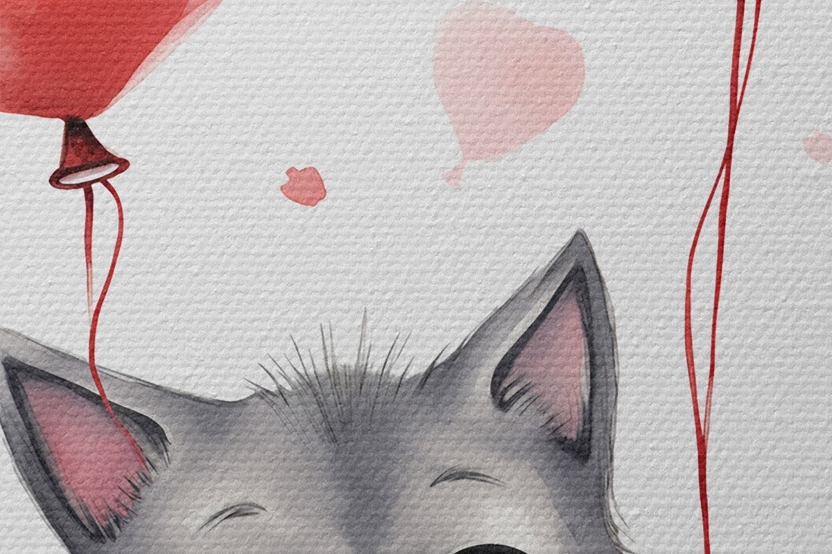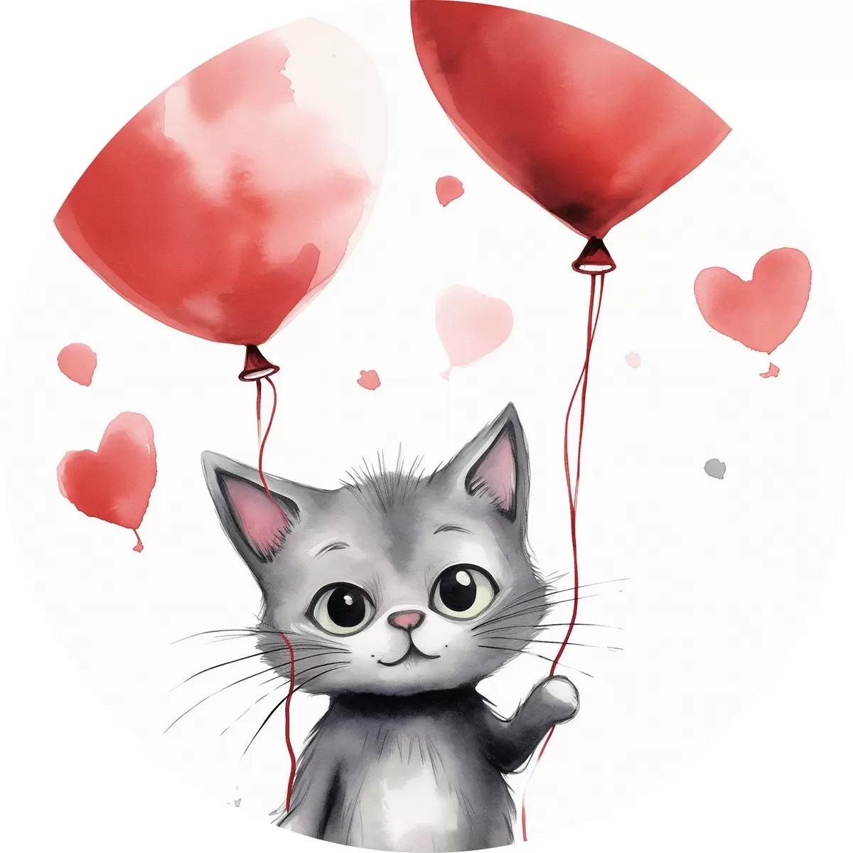 Afbeelding Schattig katje met ballonnen in de vorm van hartjes Nr r42871
