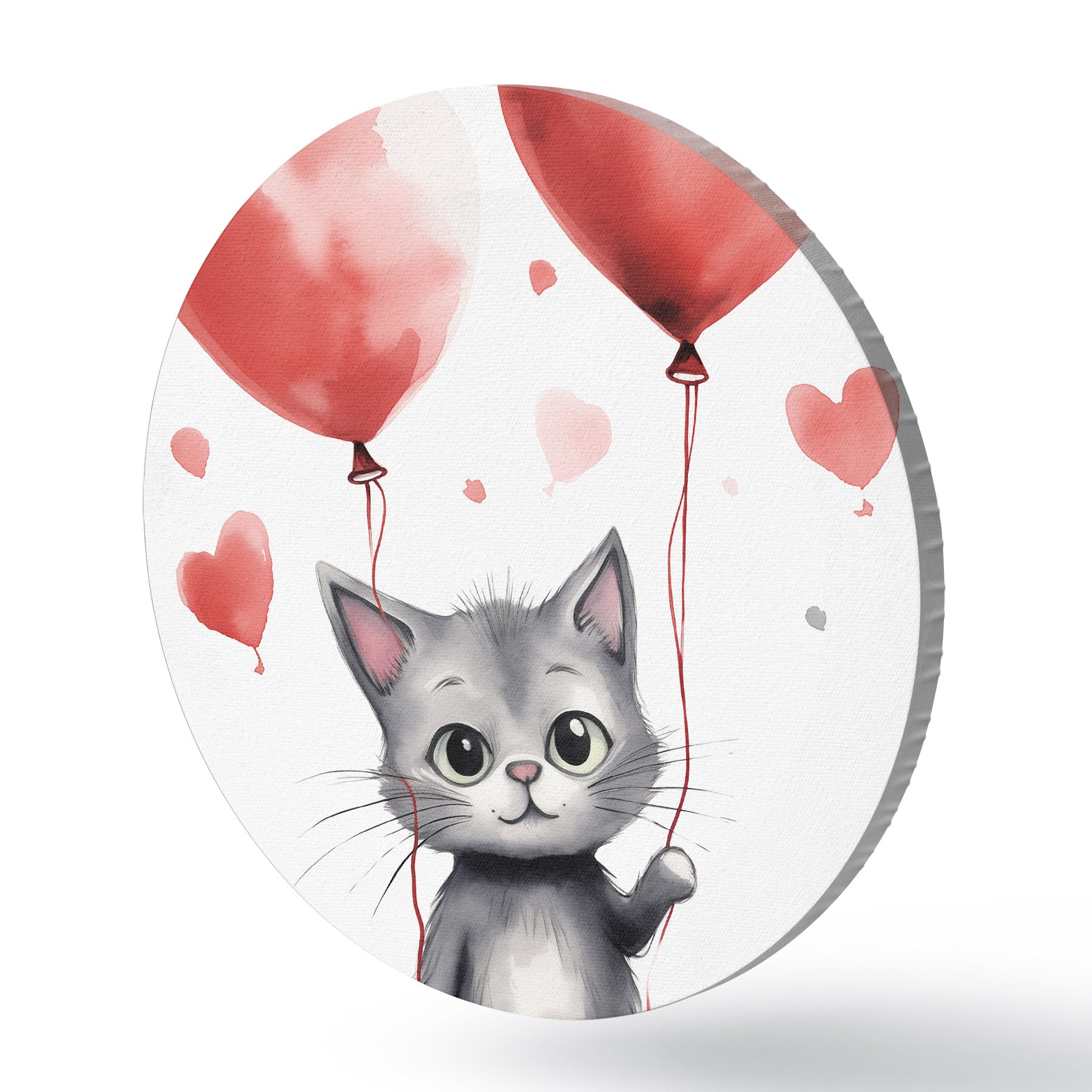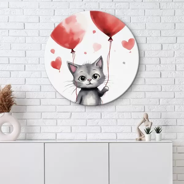 Ronde schilderijen Schattig katje met ballonnen in de vorm van hartjes r42871