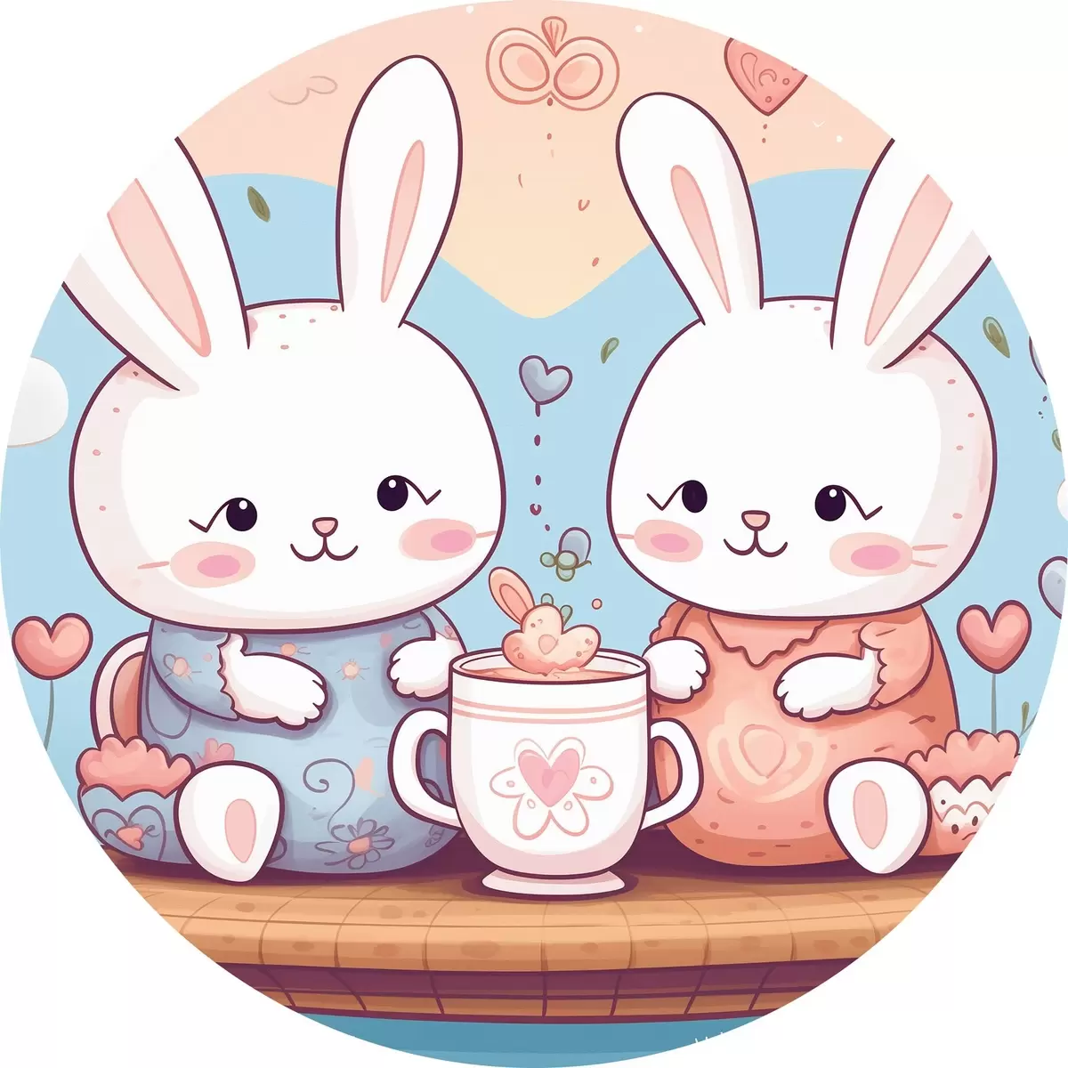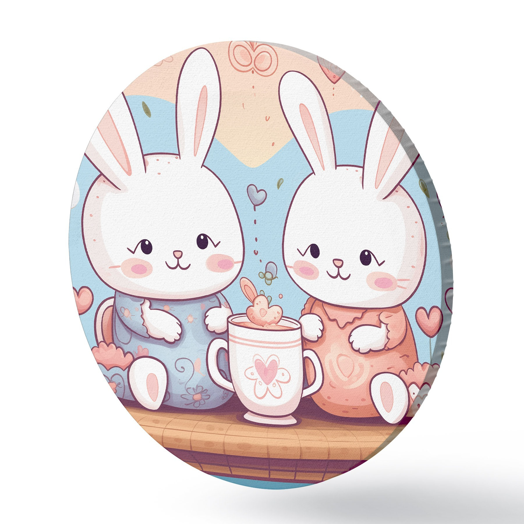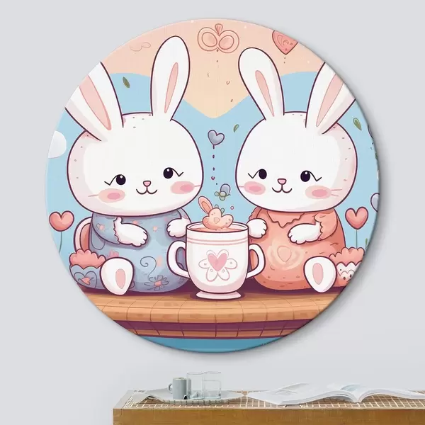 Ronde schilderijen Schattige konijntjes, theekransje r42873