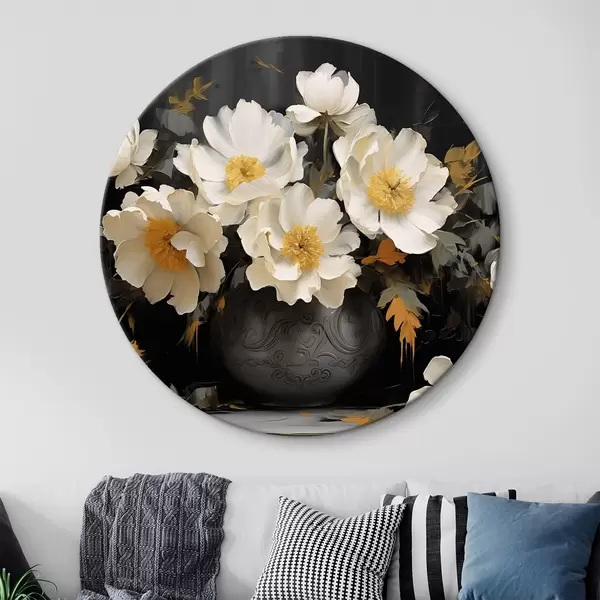 Ronde schilderijen Witte pioenrozen in een vaas r42884