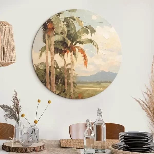Ronde schilderijen Palmbomen imitatieschilderij r42898