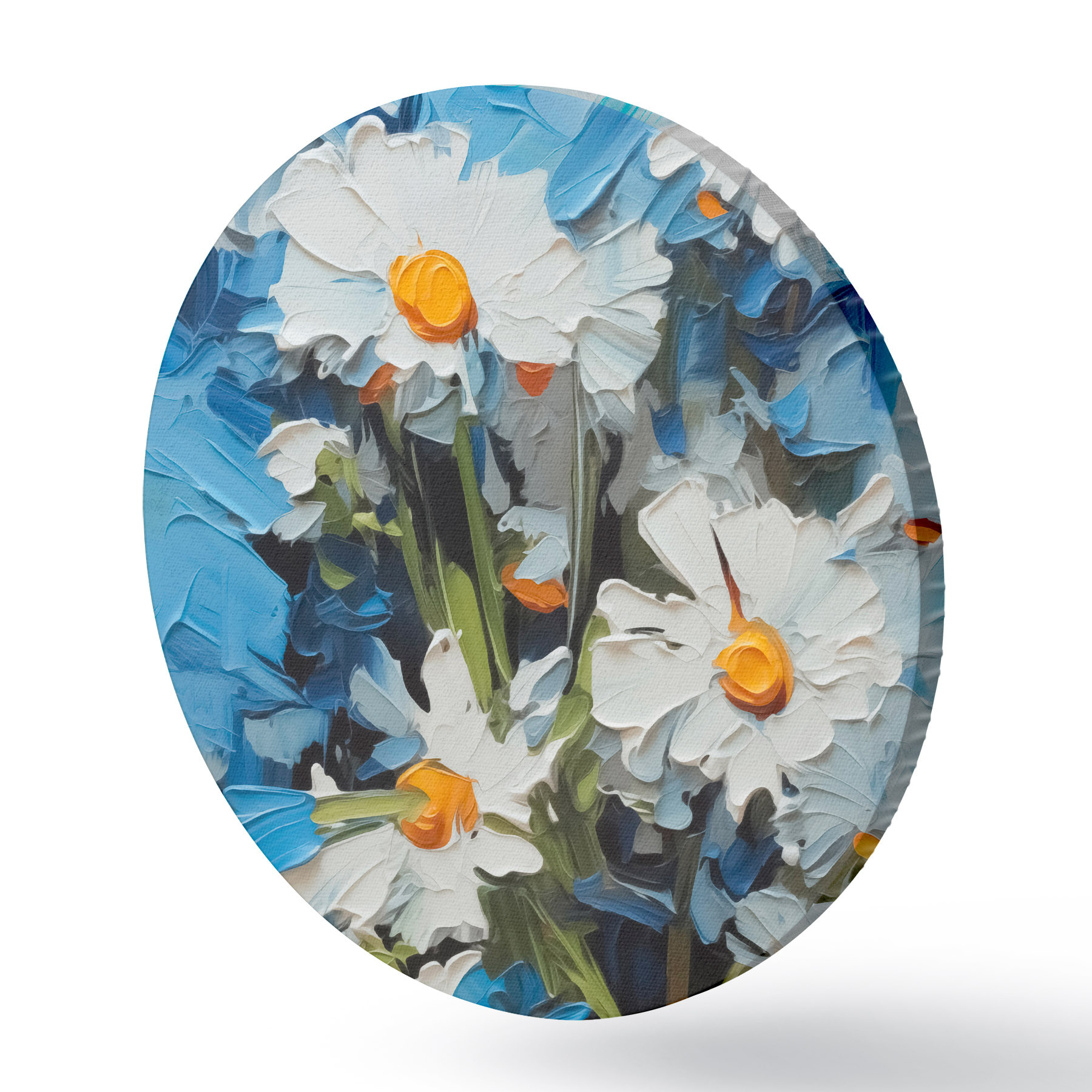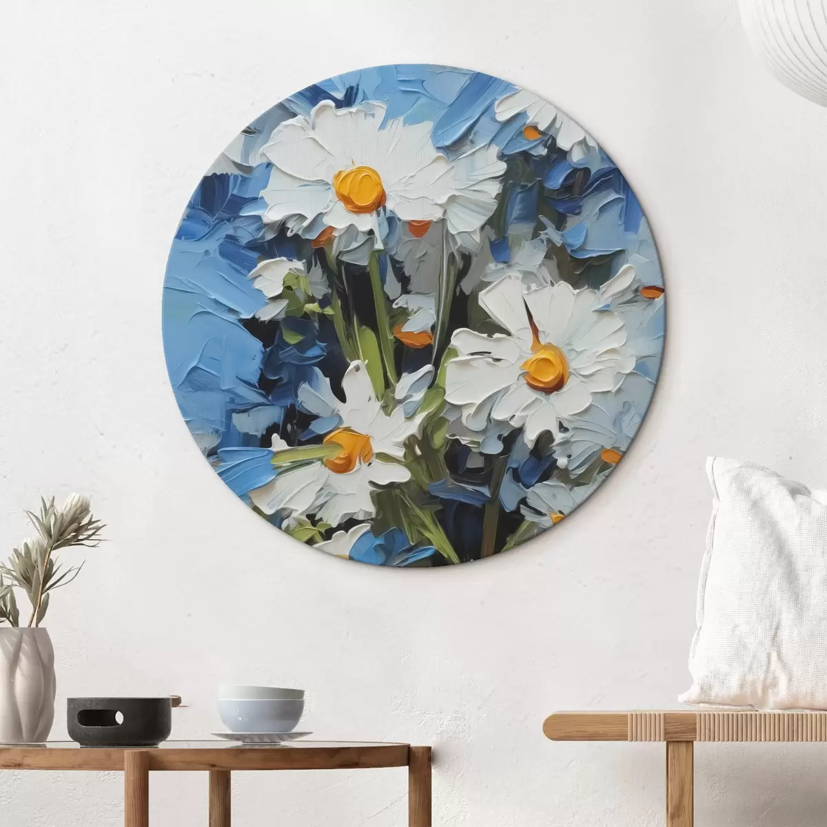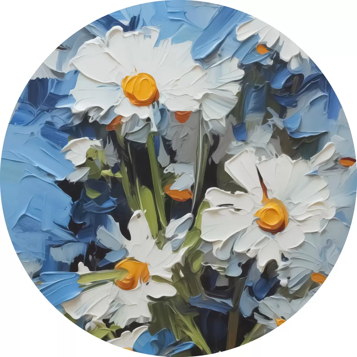Ronde schilderijen Abstracte madeliefjes imitatie van penseelstreken r42902