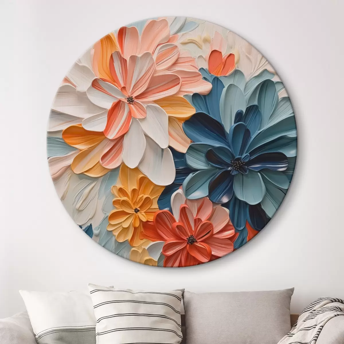 Ronde schilderijen Bloemen imitatie van schilderstreken r42907