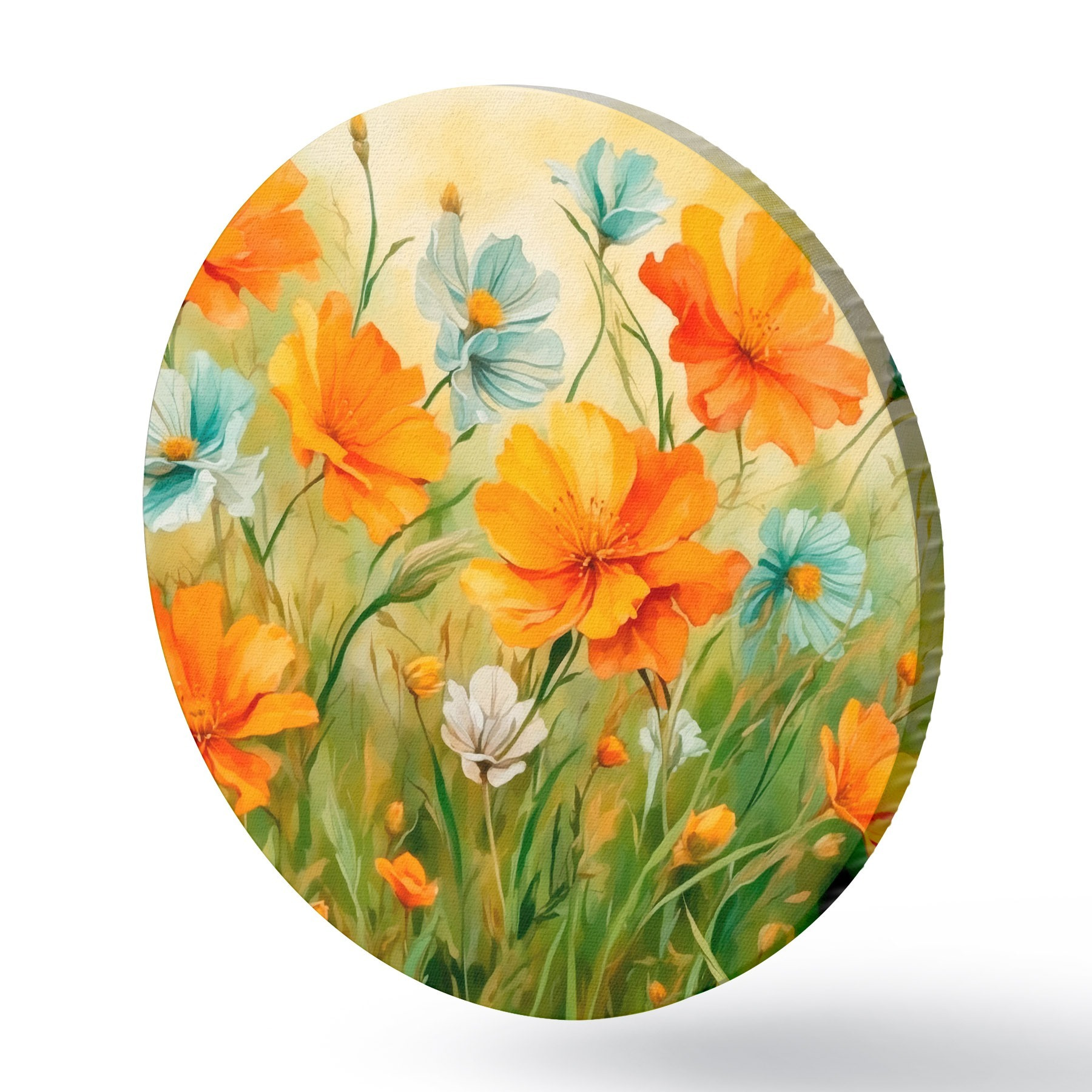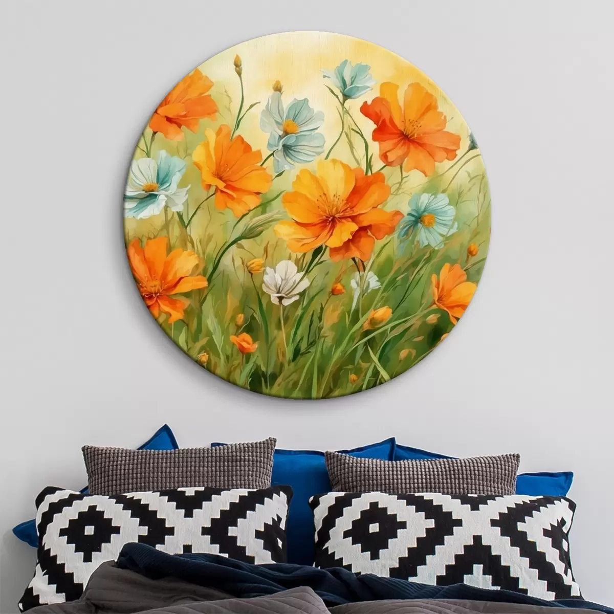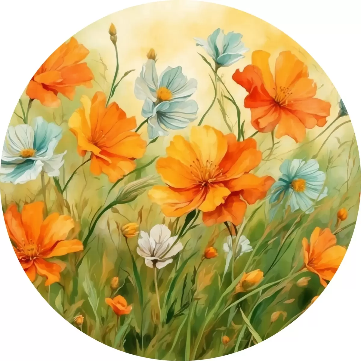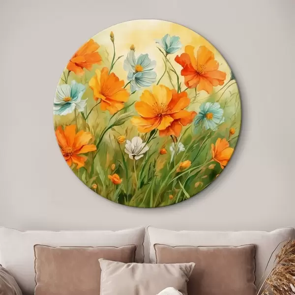Ronde schilderijen Bloemen- en plantenveld in aquarelschilderstijl r42916
