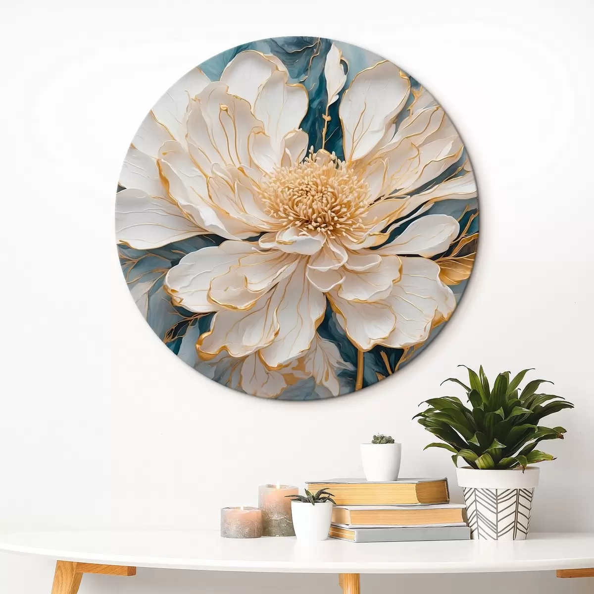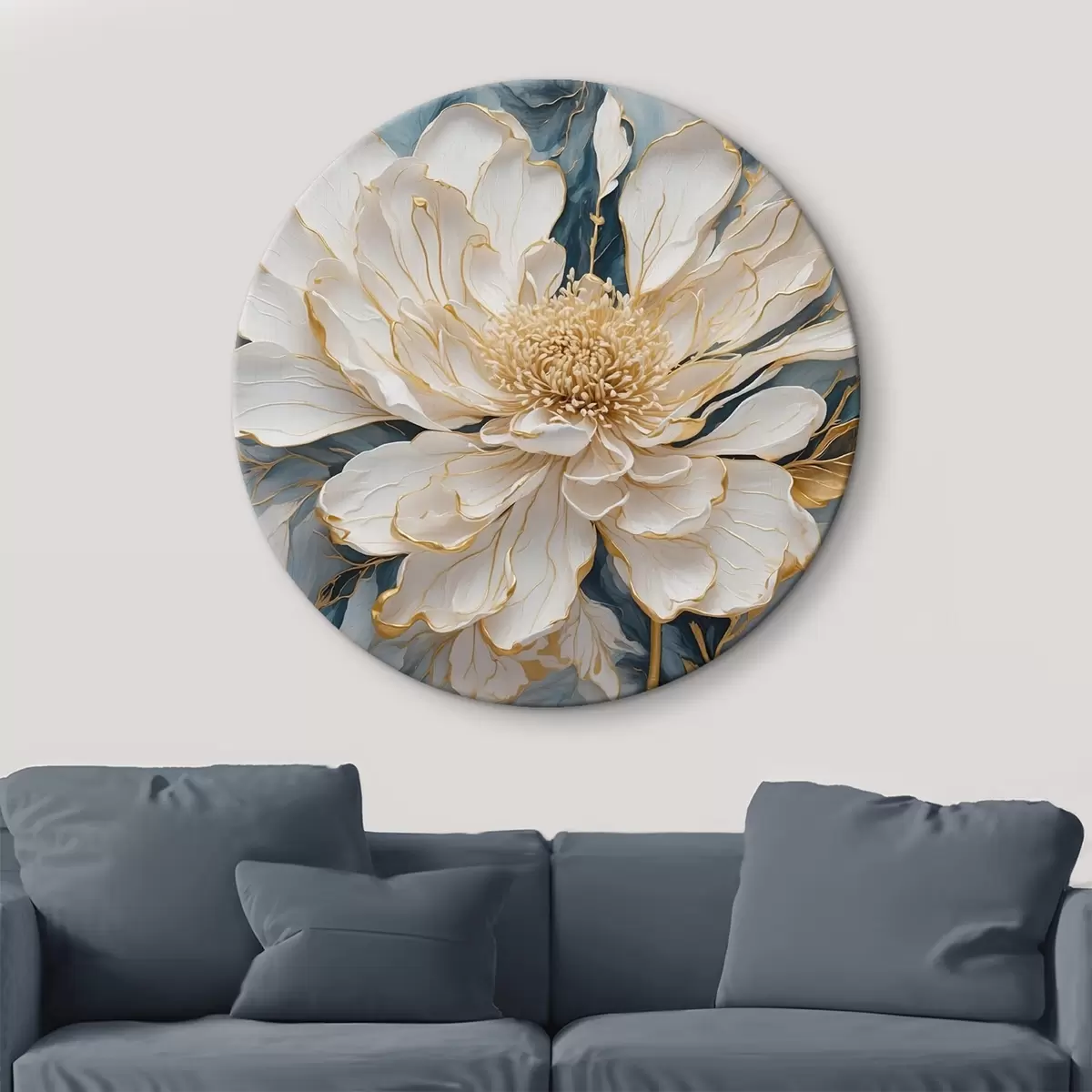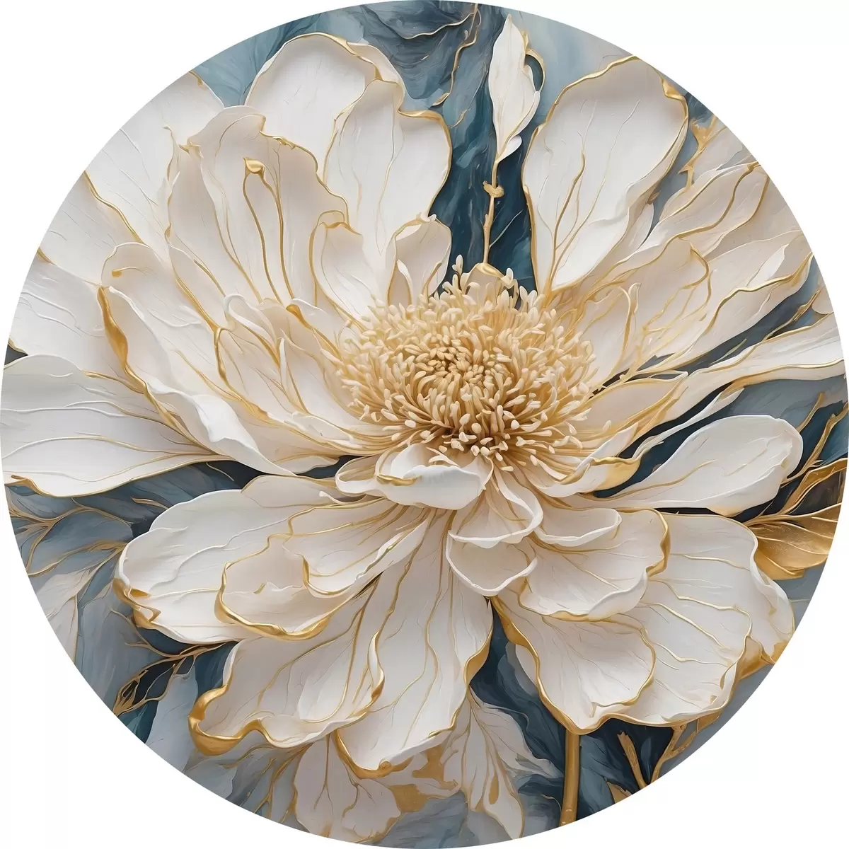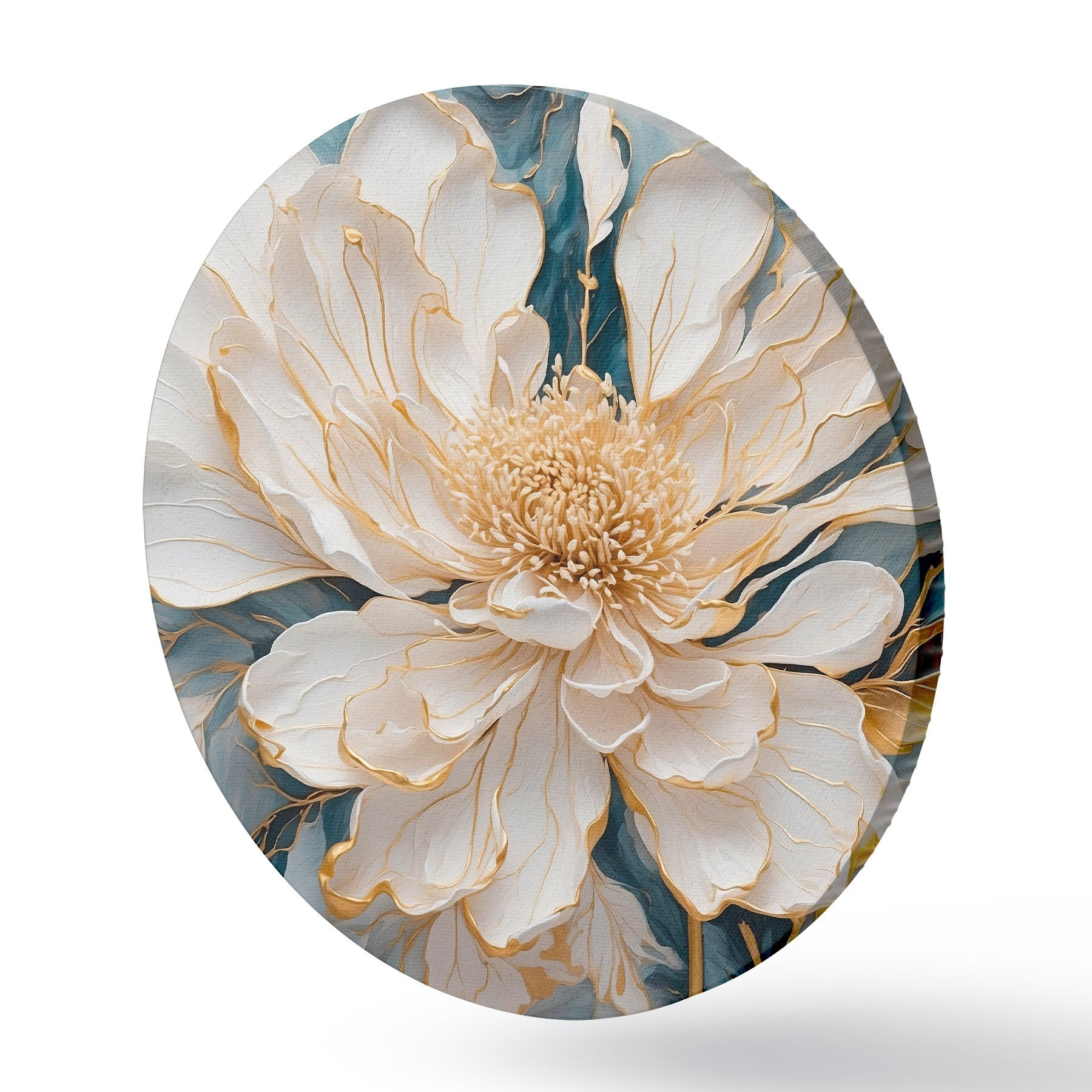 Ronde schilderijen Witte bloem met contouren op een blauw-witte achtergrond r42923