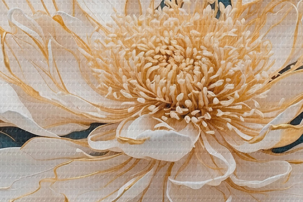 Afbeelding Witte bloem met contouren op een blauw-witte achtergrond Nr r42923