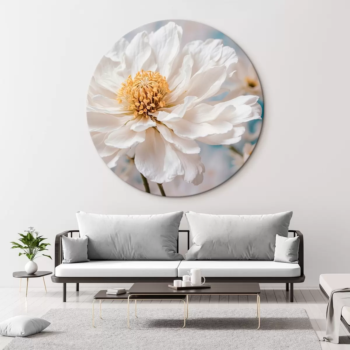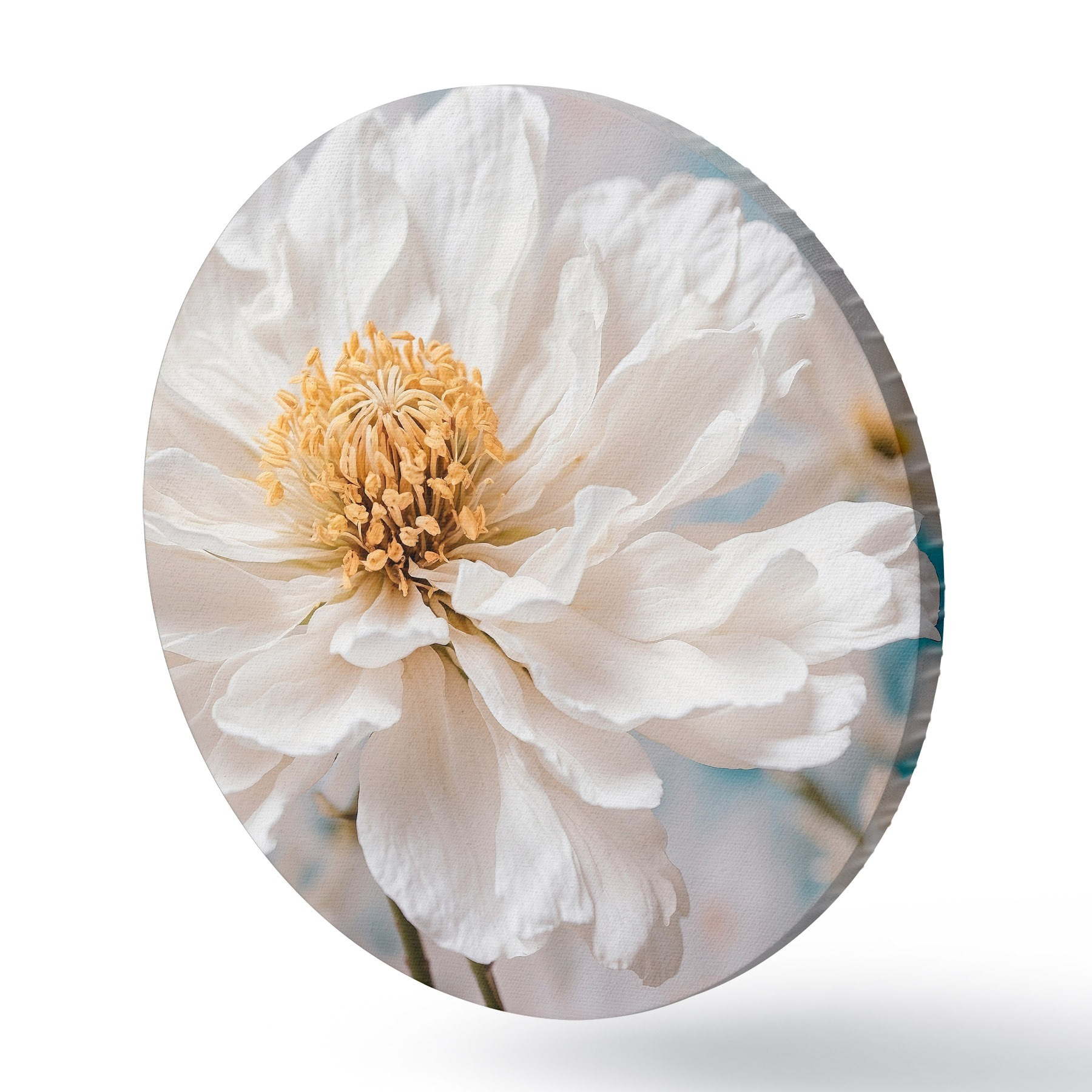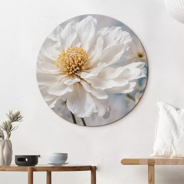Ronde schilderijen Witte bloem op wazige achtergrond r42925
