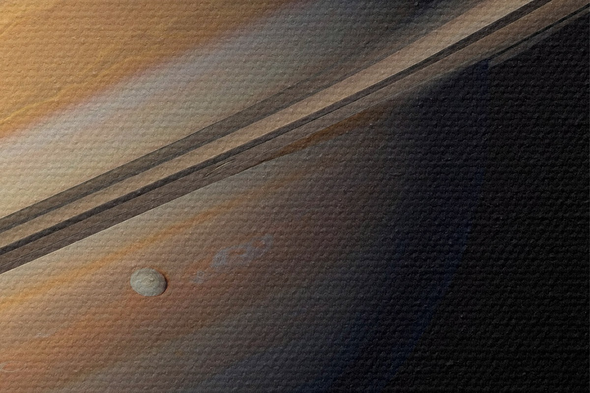 Het schilderij kan direct na ontvangst worden opgehangen. Het schilderij wordt opgespannen op een 2 cm breed houten spieraam.
