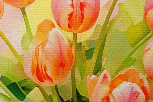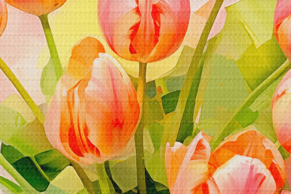 Afbeelding Schilderachtig stilleven met tulpen in een glazen vaas op een lichte achtergrond Nr r42940